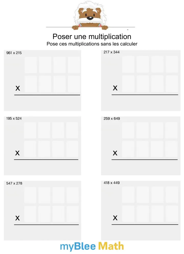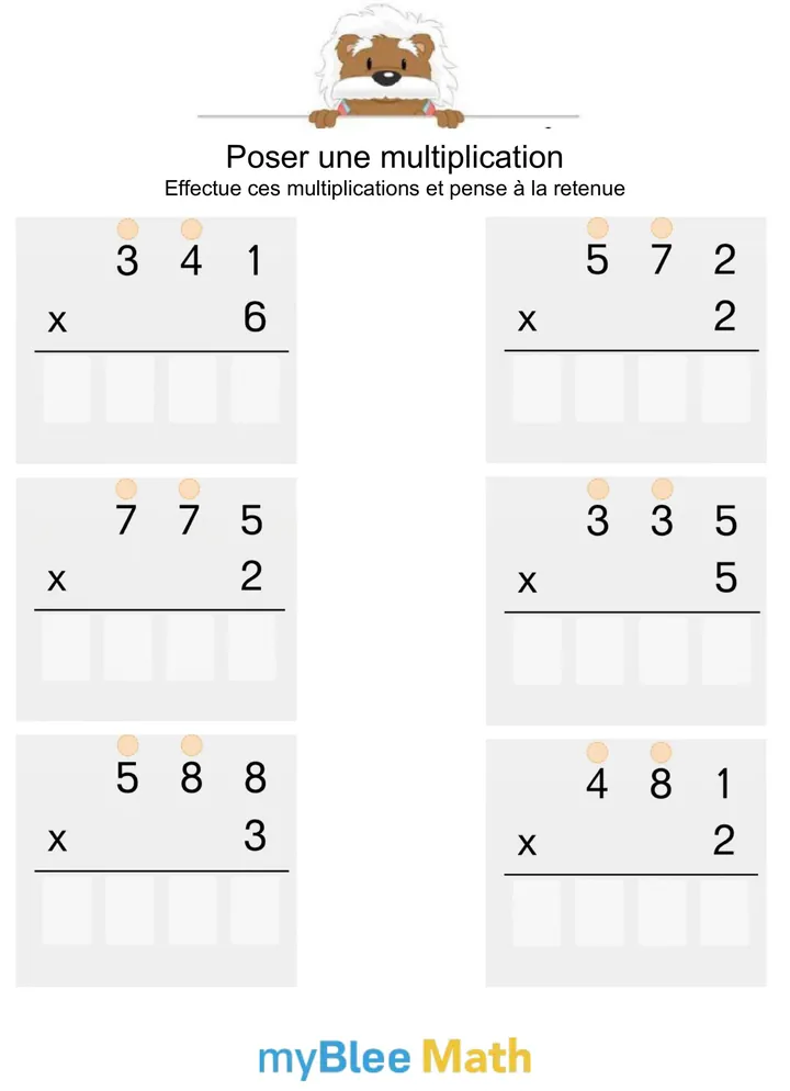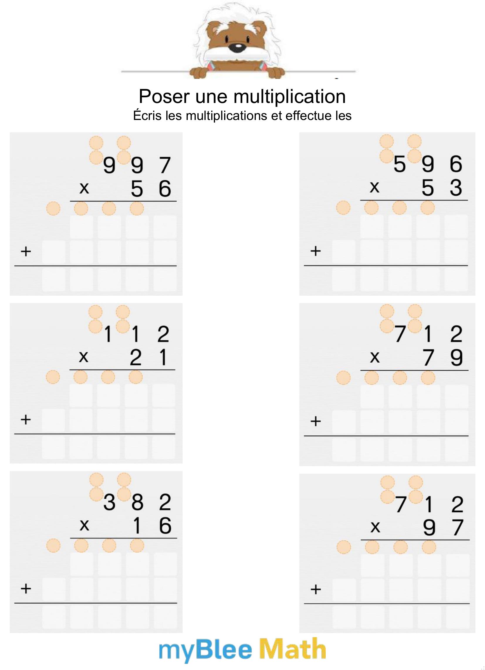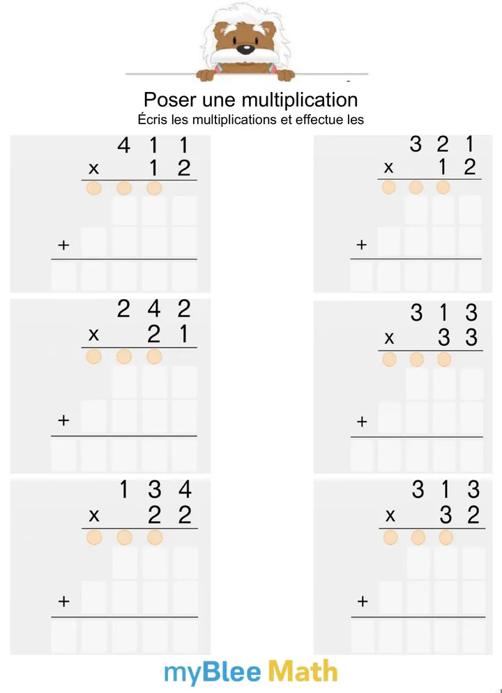Nos exercices de multiplication sont classés par niveaux de classe afin de s’adapter à tous les élèves, qu’ils soient à l’aise avec les calculs ou qu’ils aient encore besoin d’entraînement. Chaque fiche propose une progression claire, avec des énoncés variés pour maîtriser les tables de multiplication étape par étape.