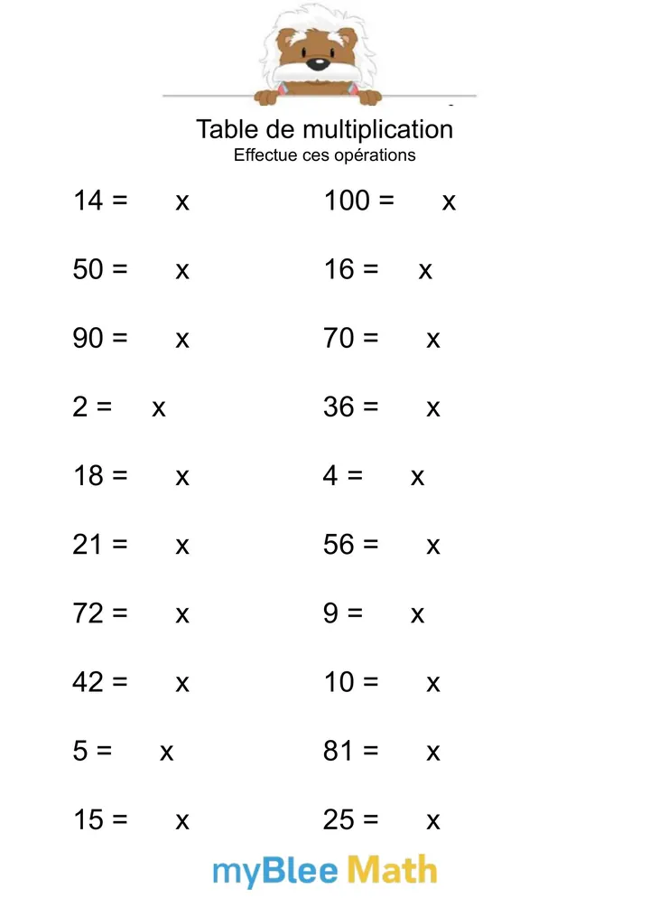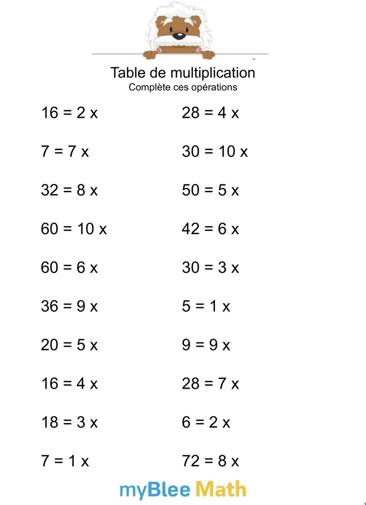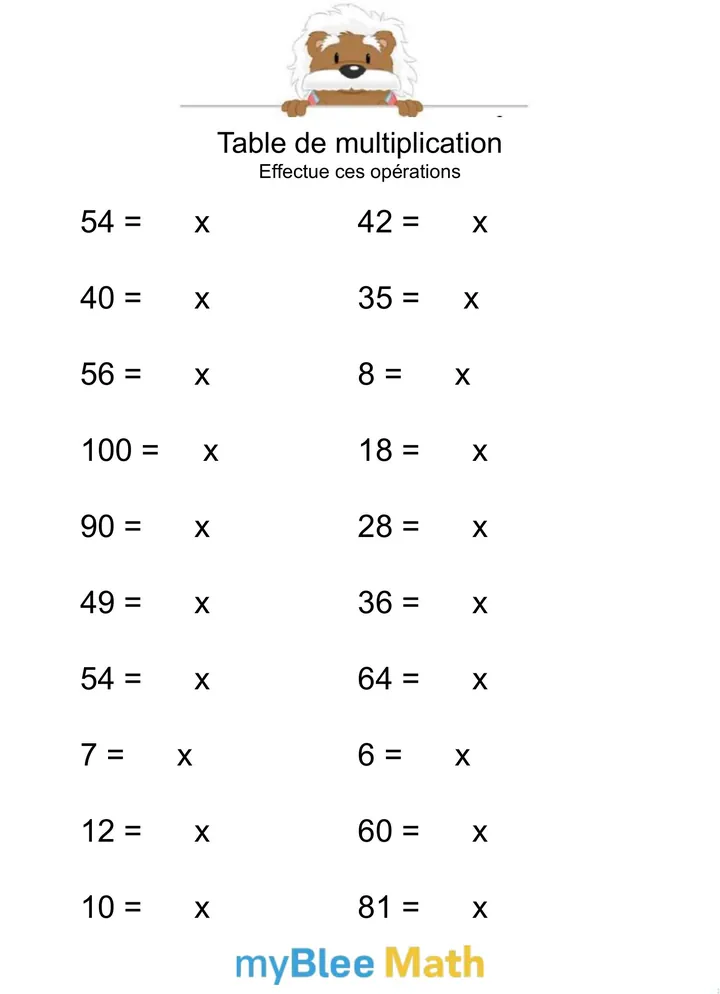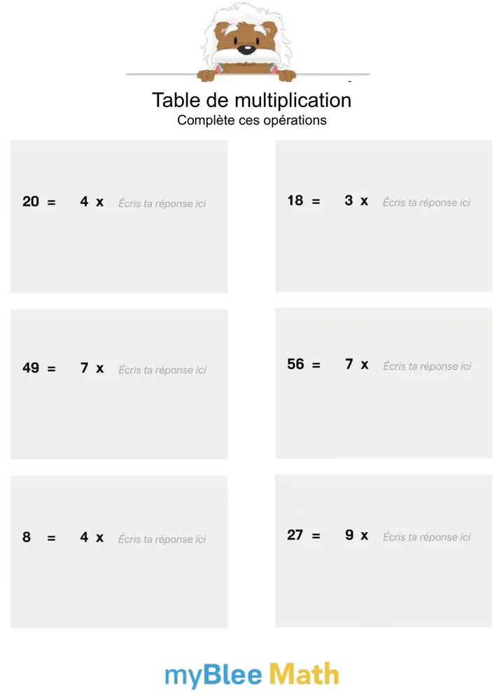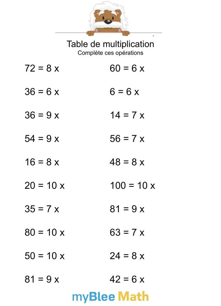 Pour aider les enfants à apprendre facilement les tables de multiplication, l’application MyBlee Math est aussi un excellent complément aux exercices papier. Conçue pour les élèves du primaire à la 6ème, elle propose des exercices interactifs adaptés au niveau de chacun, avec des activités ludiques pour apprendre en jouant. Les enfants peuvent s’exercer à leur rythme, réviser les tables de 2 à 10, et recevoir un retour immédiat sur leurs réponses.