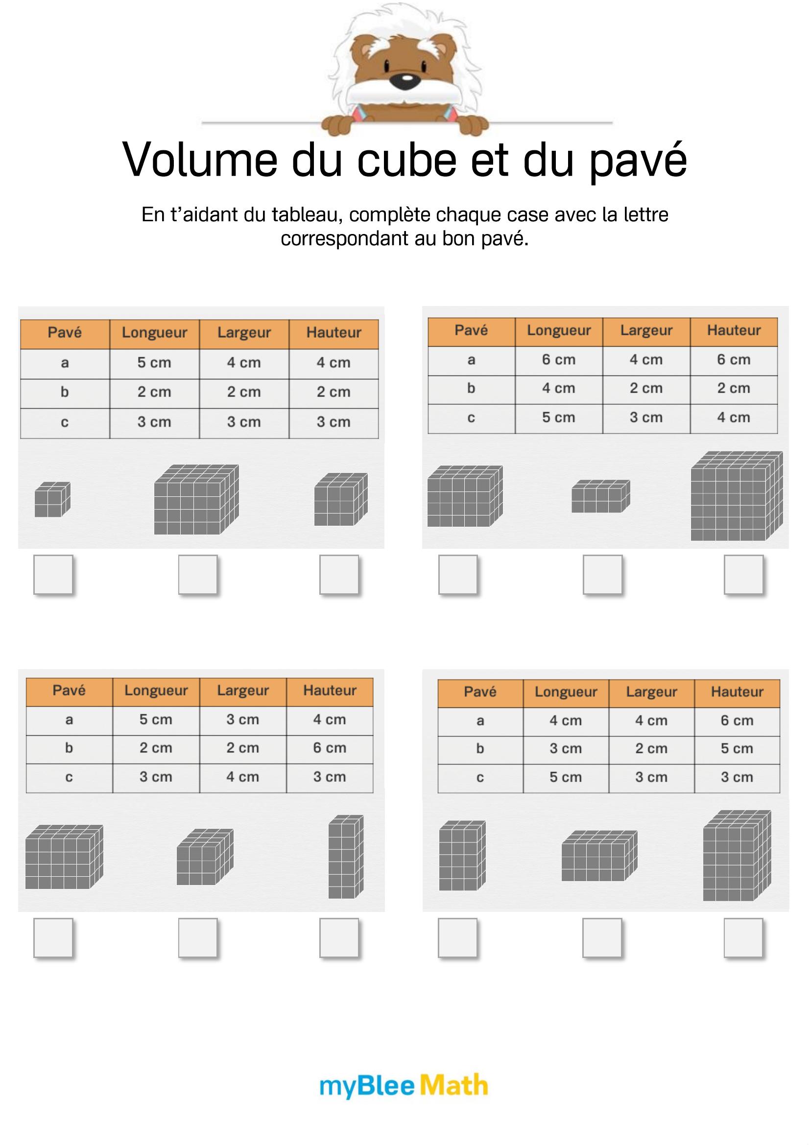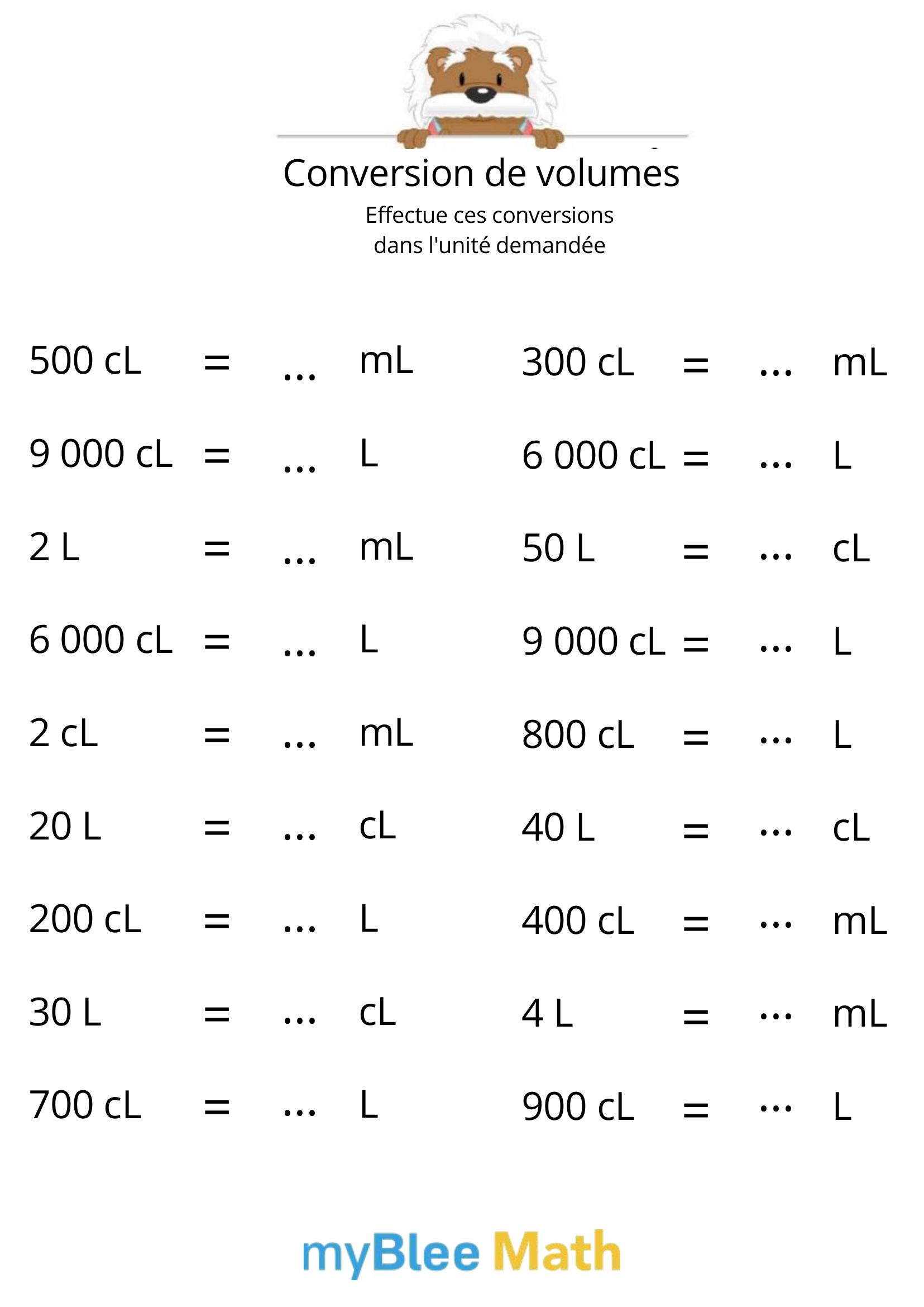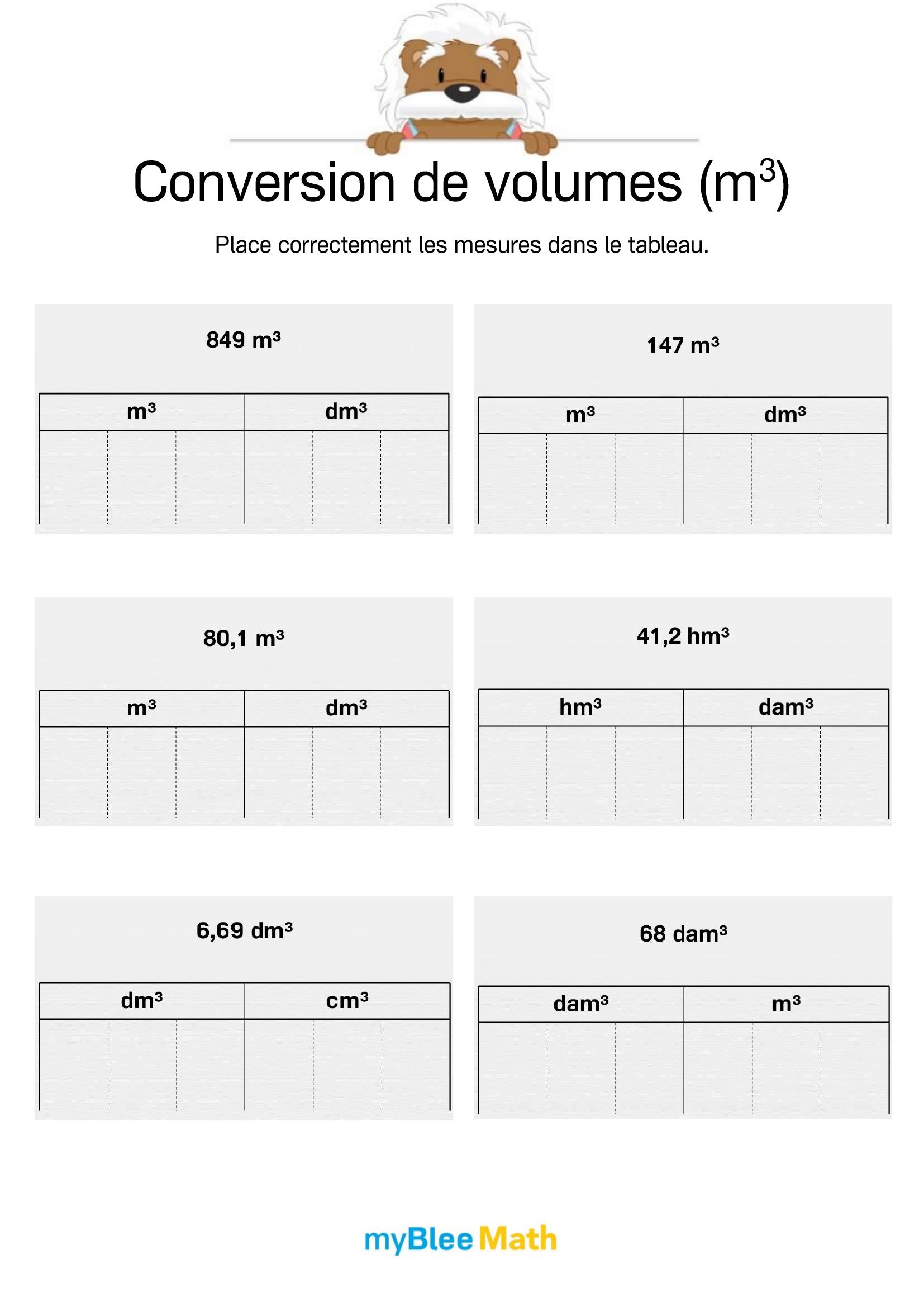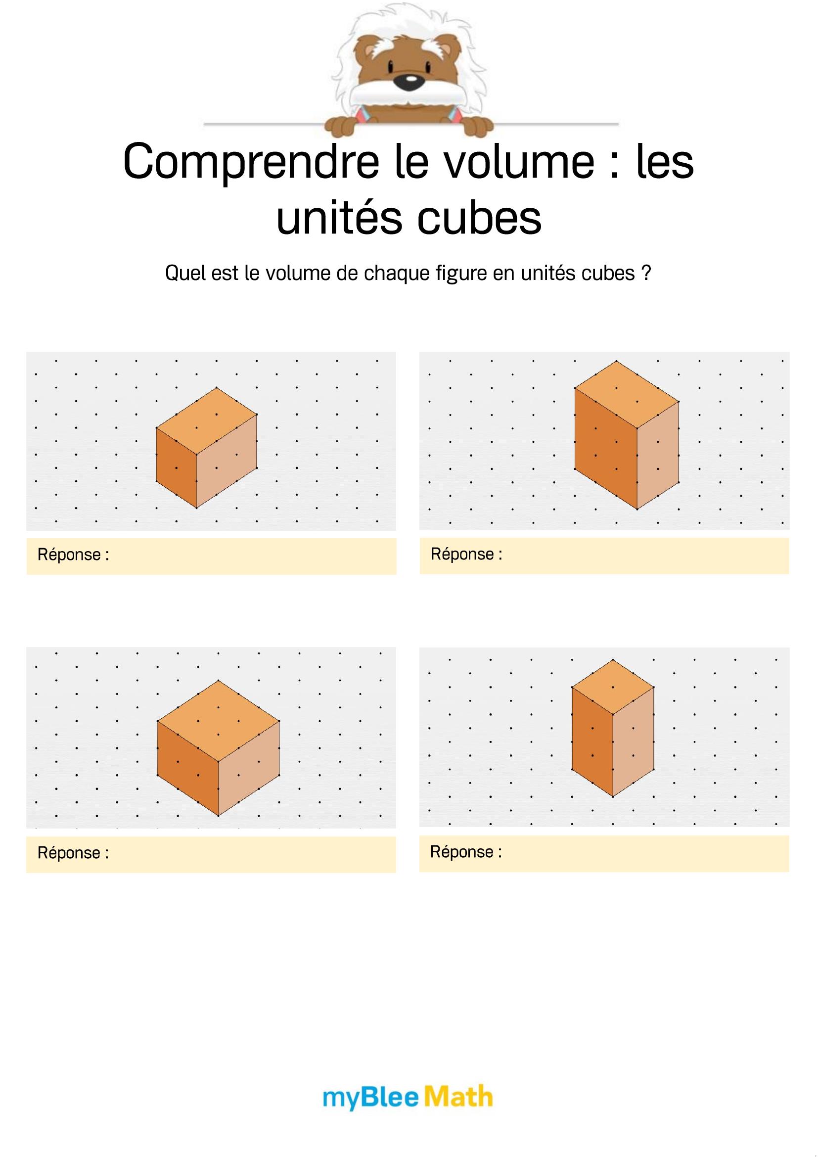 Exercez-vous au calcul du volume et de la masse avec myBlee Math. Des fiches à imprimer et des activités interactives pour comprendre ces notions clés dès l’école primaire.