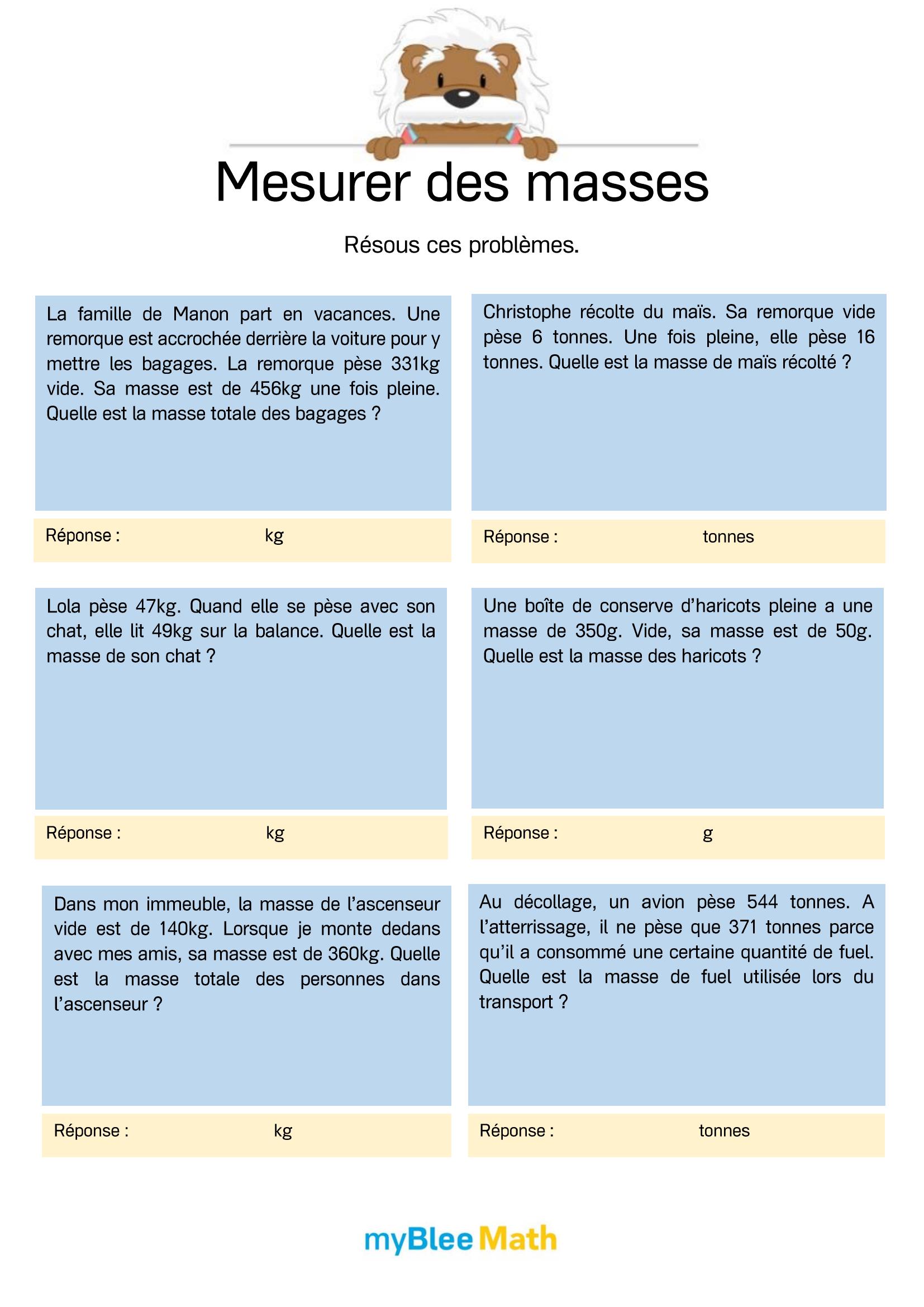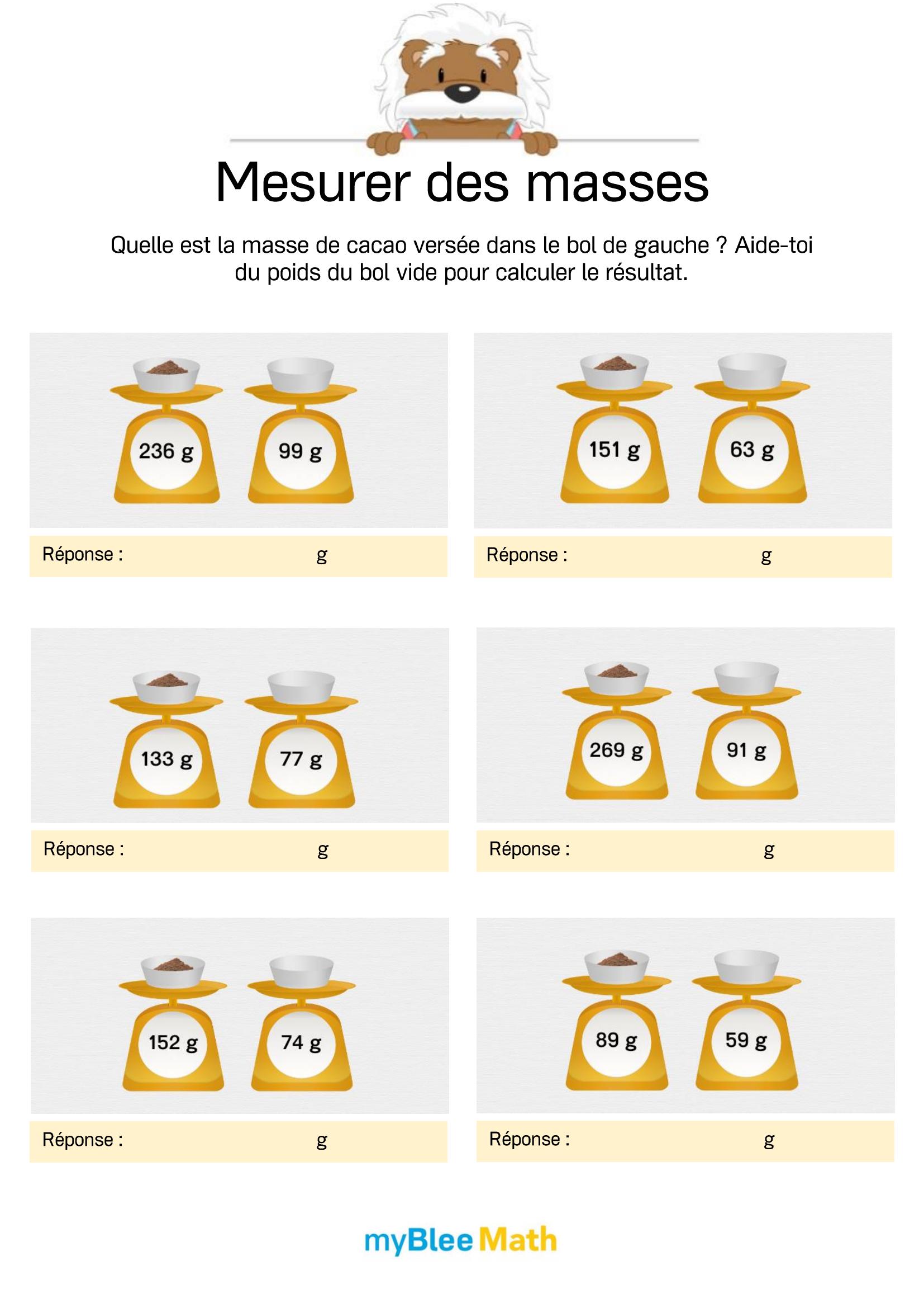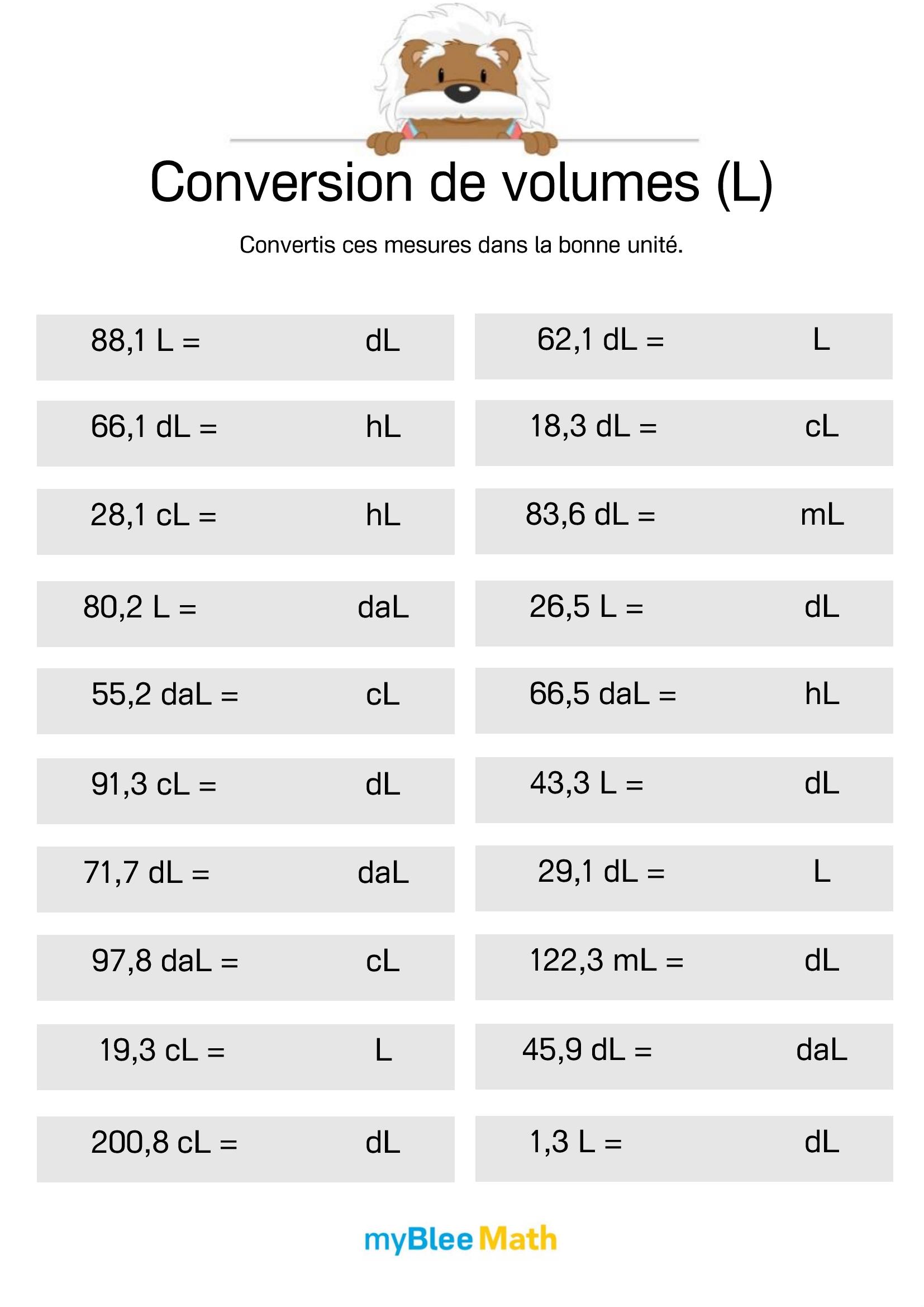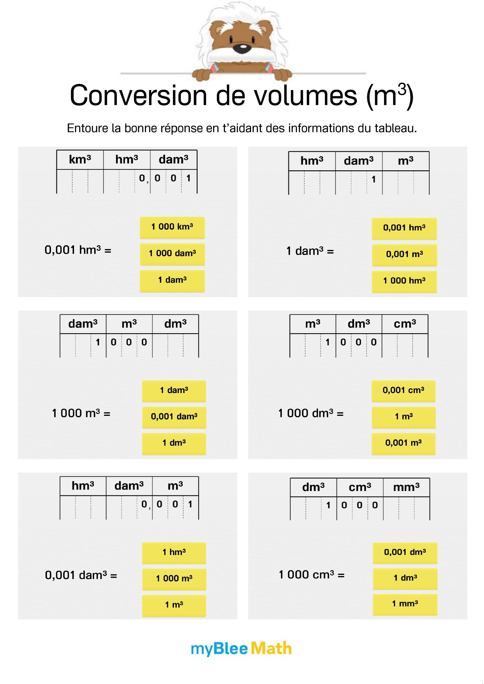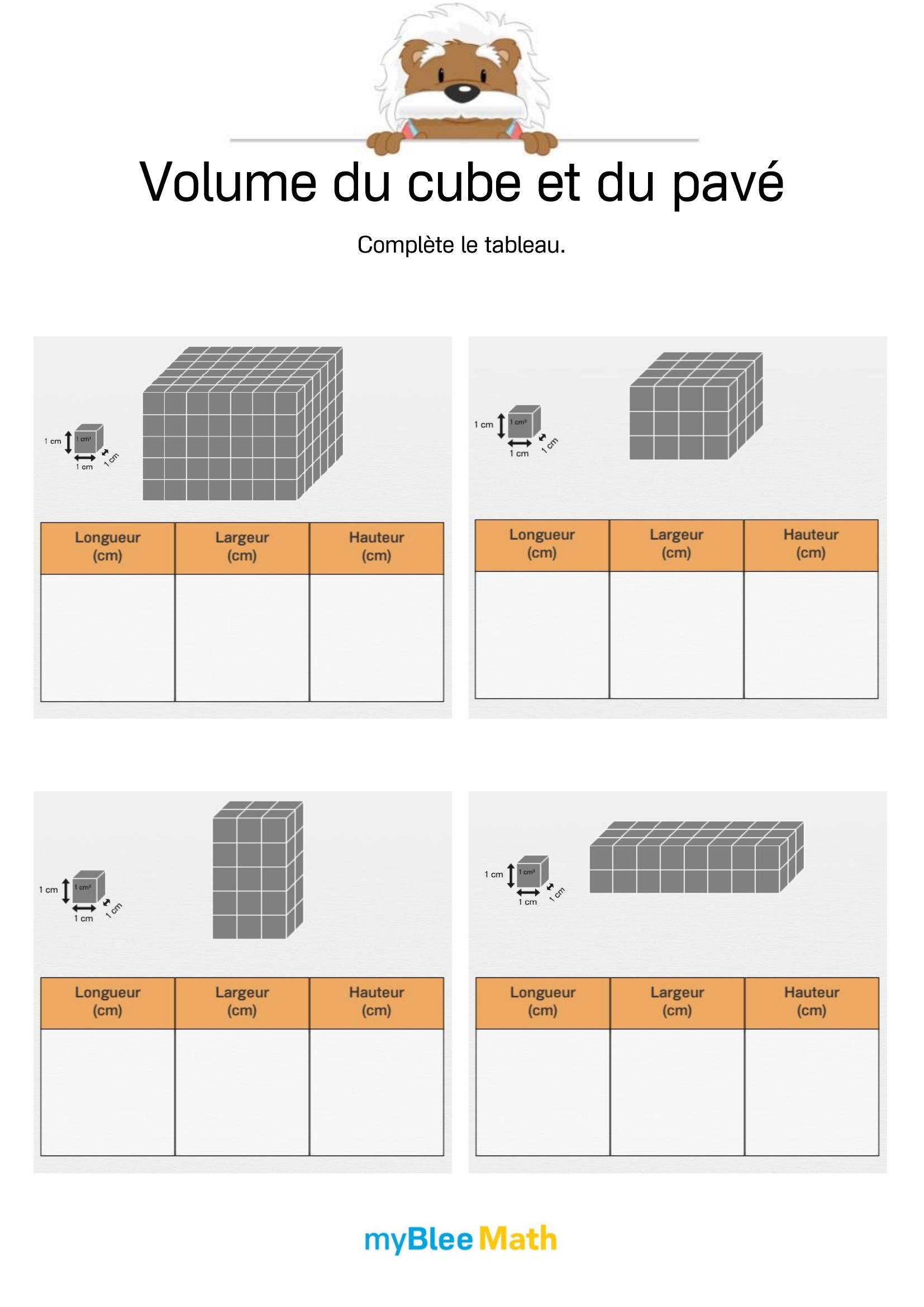 Exercez-vous au calcul du volume et de la masse avec myBlee Math. Des fiches à imprimer et des activités interactives pour comprendre ces notions clés dès l’école primaire.
