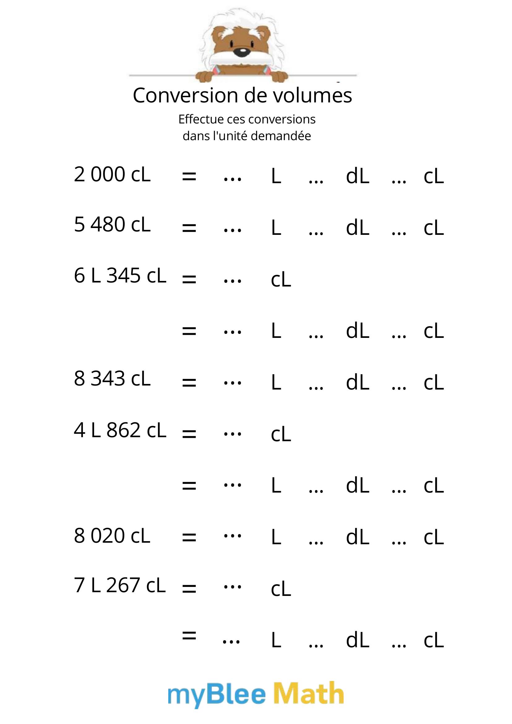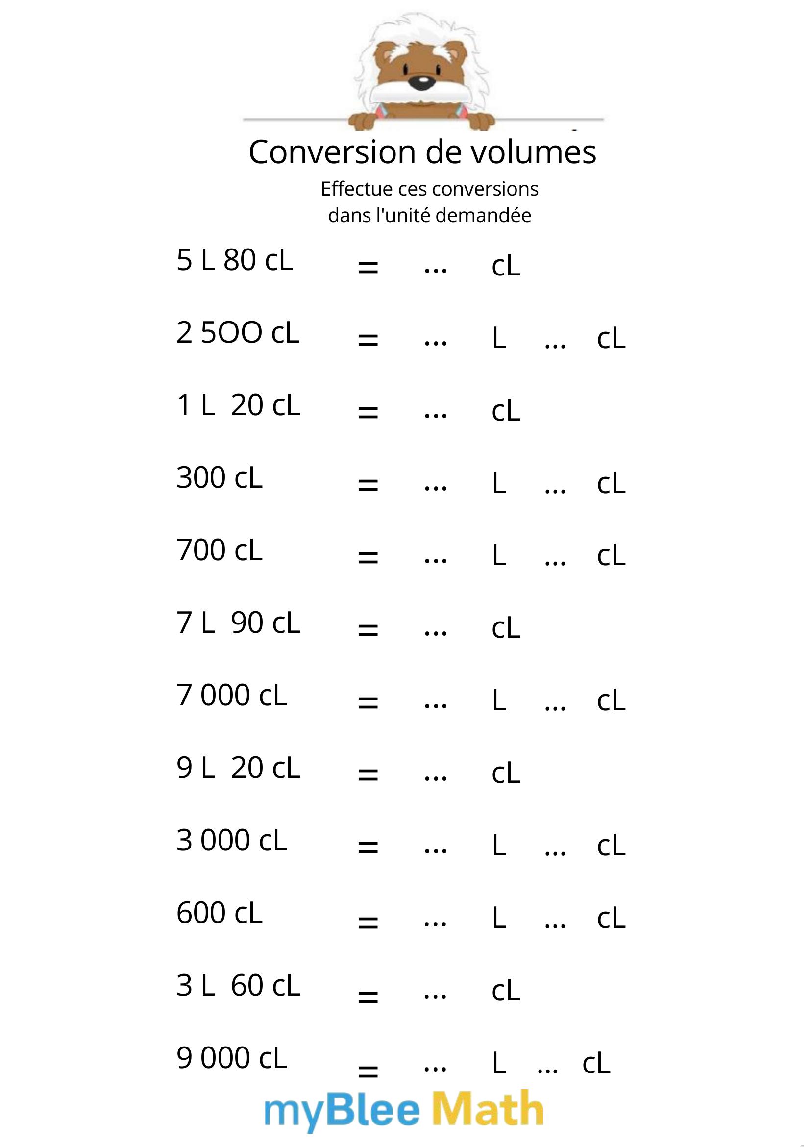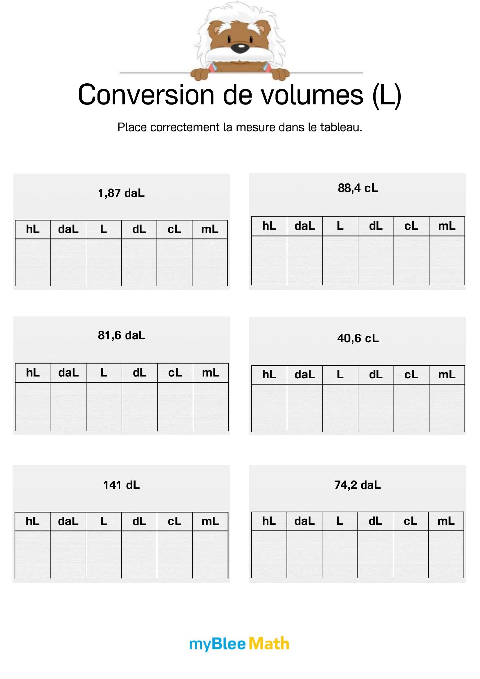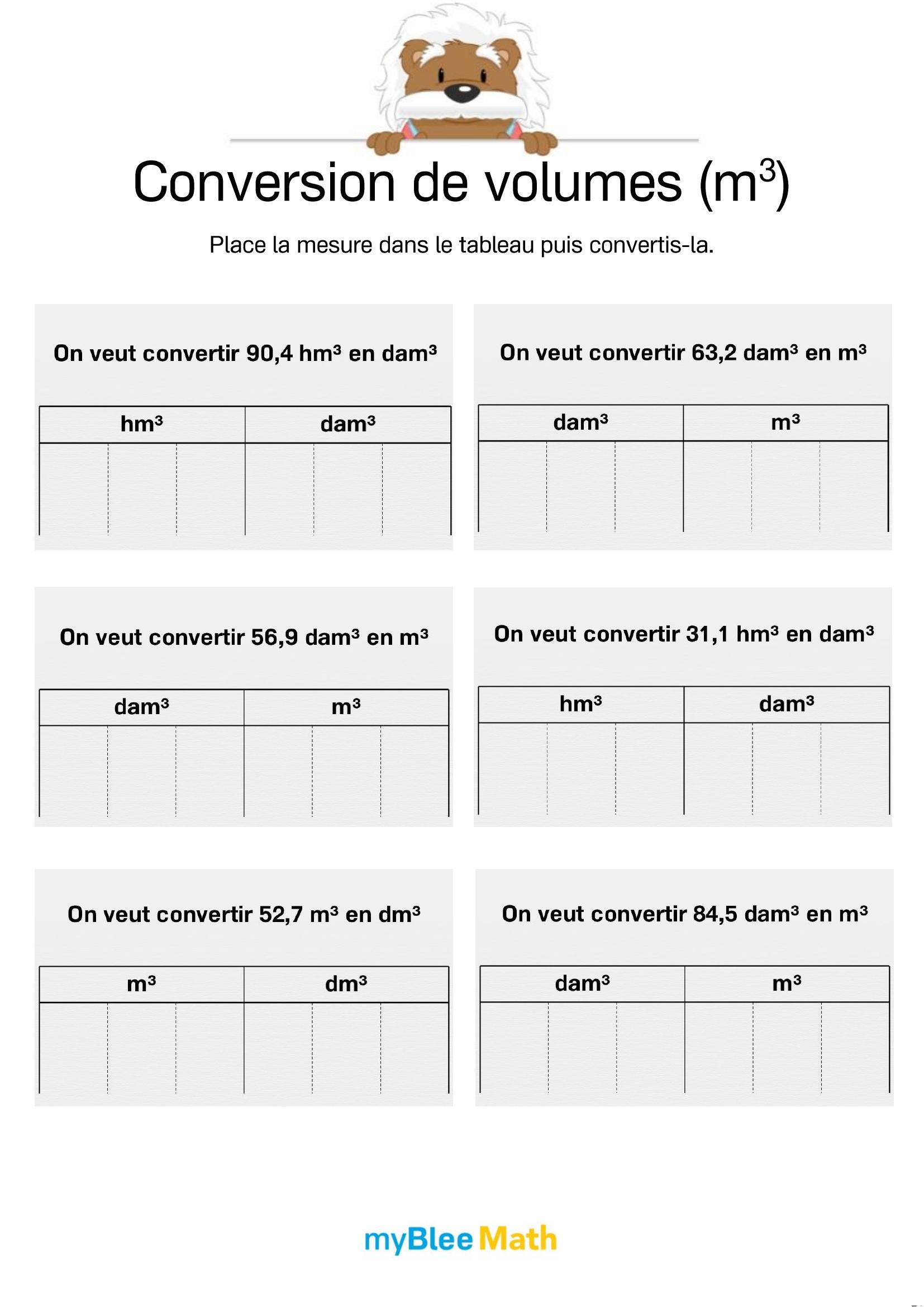 Exercez-vous au calcul du volume et de la masse avec myBlee Math. Des fiches à imprimer et des activités interactives pour comprendre ces notions clés dès l’école primaire.