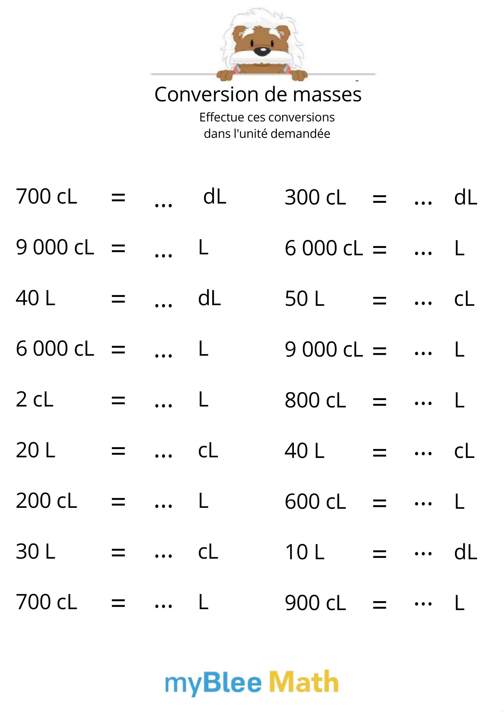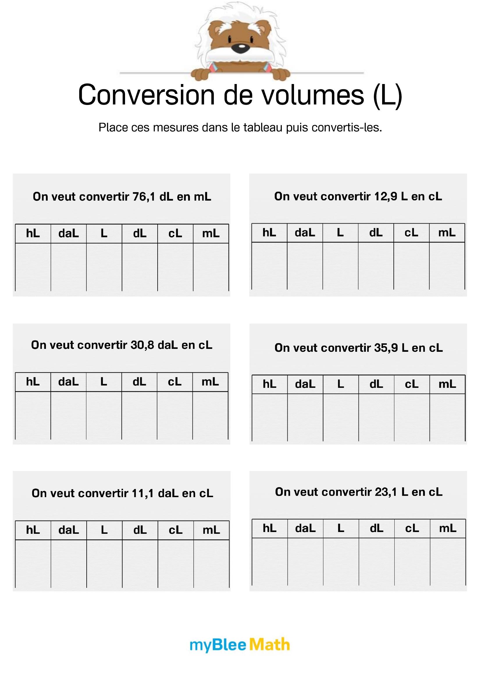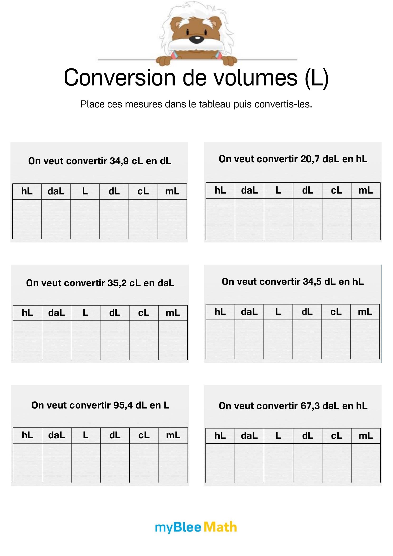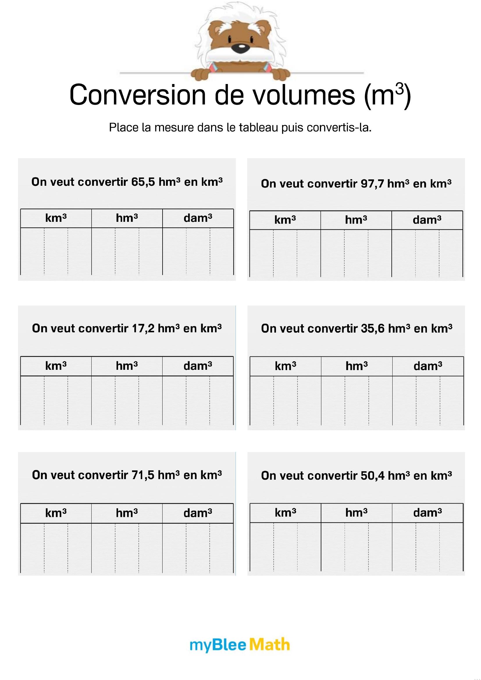 Exercez-vous au calcul du volume et de la masse avec myBlee Math. Des fiches à imprimer et des activités interactives pour comprendre ces notions clés dès l’école primaire.