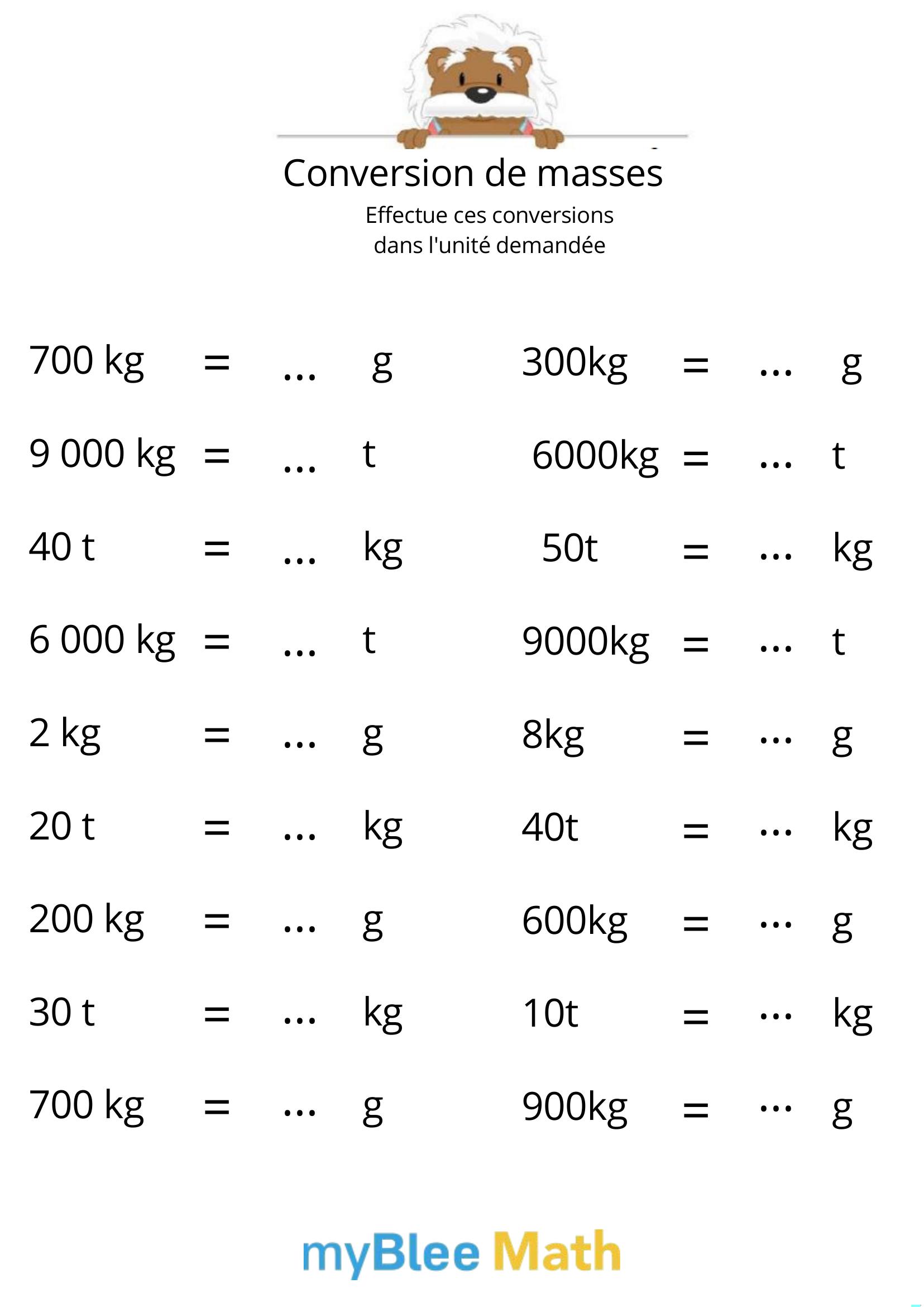 Volume et masse : des exercices à imprimer gratuitement