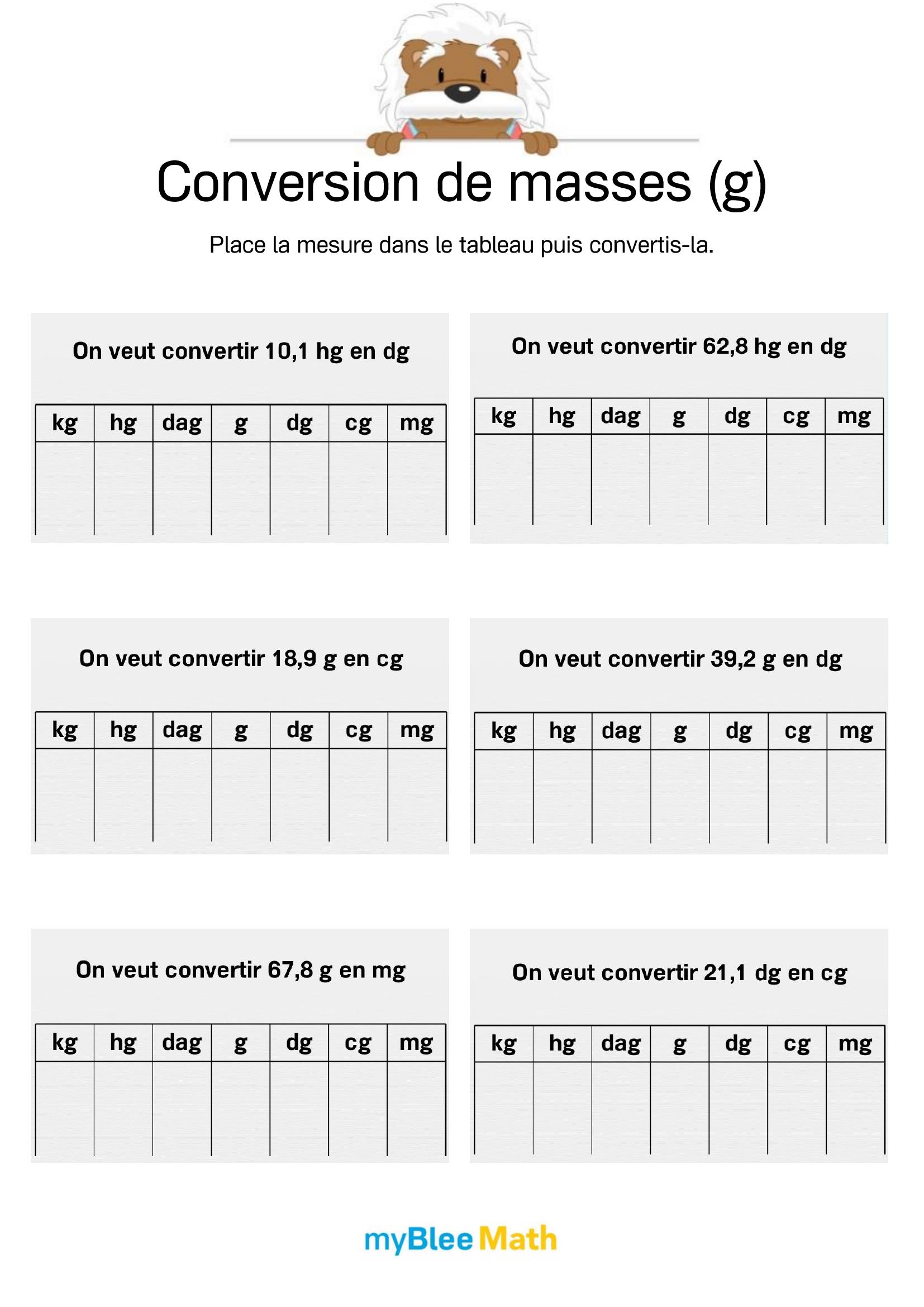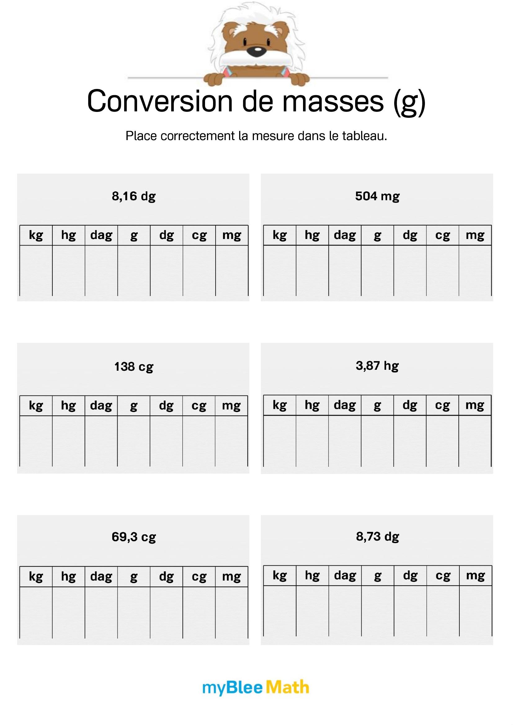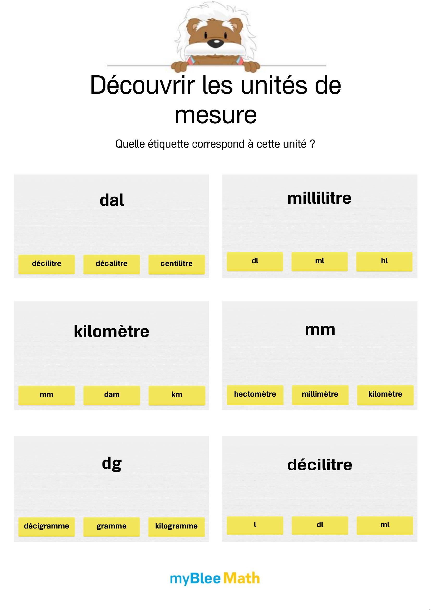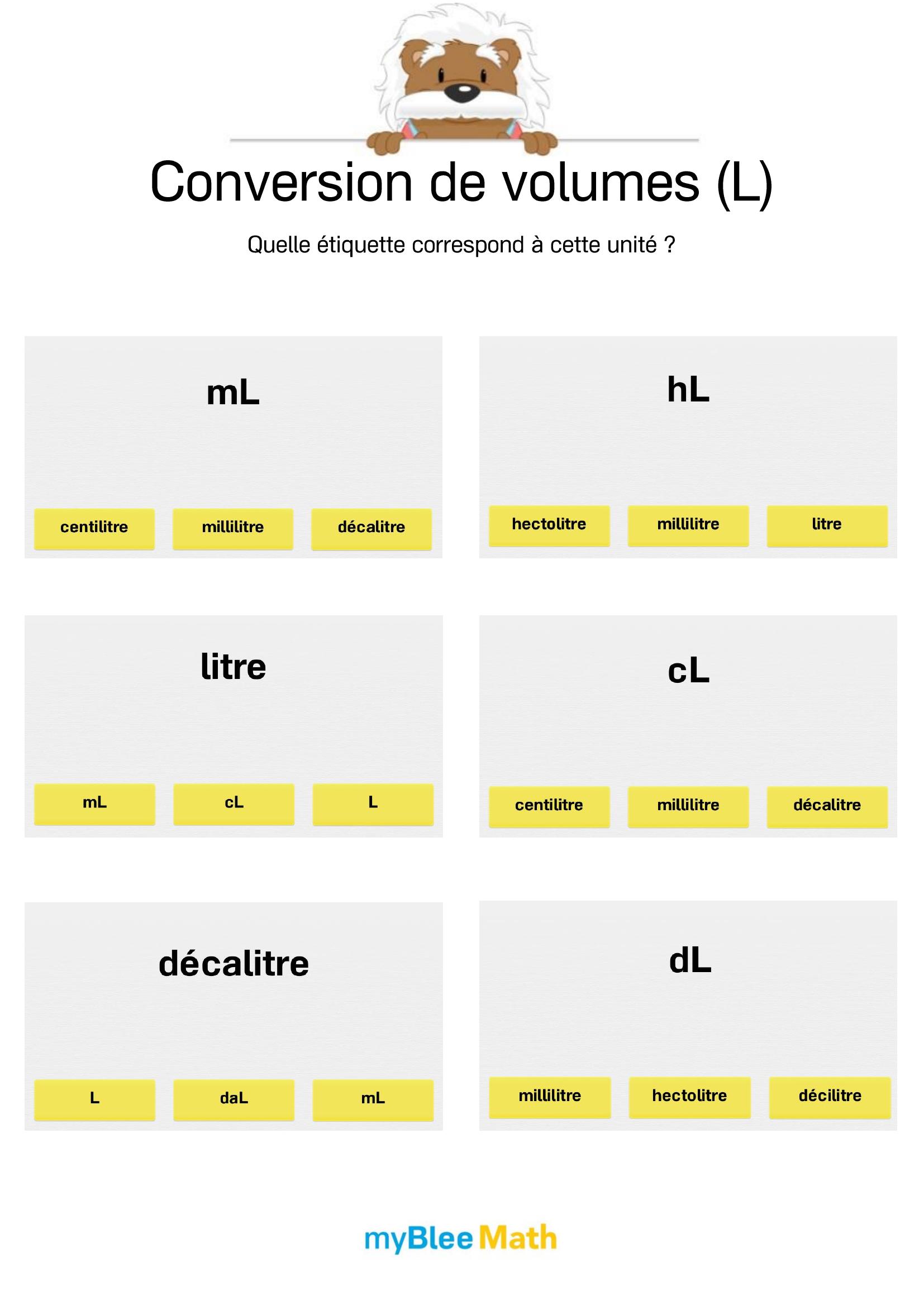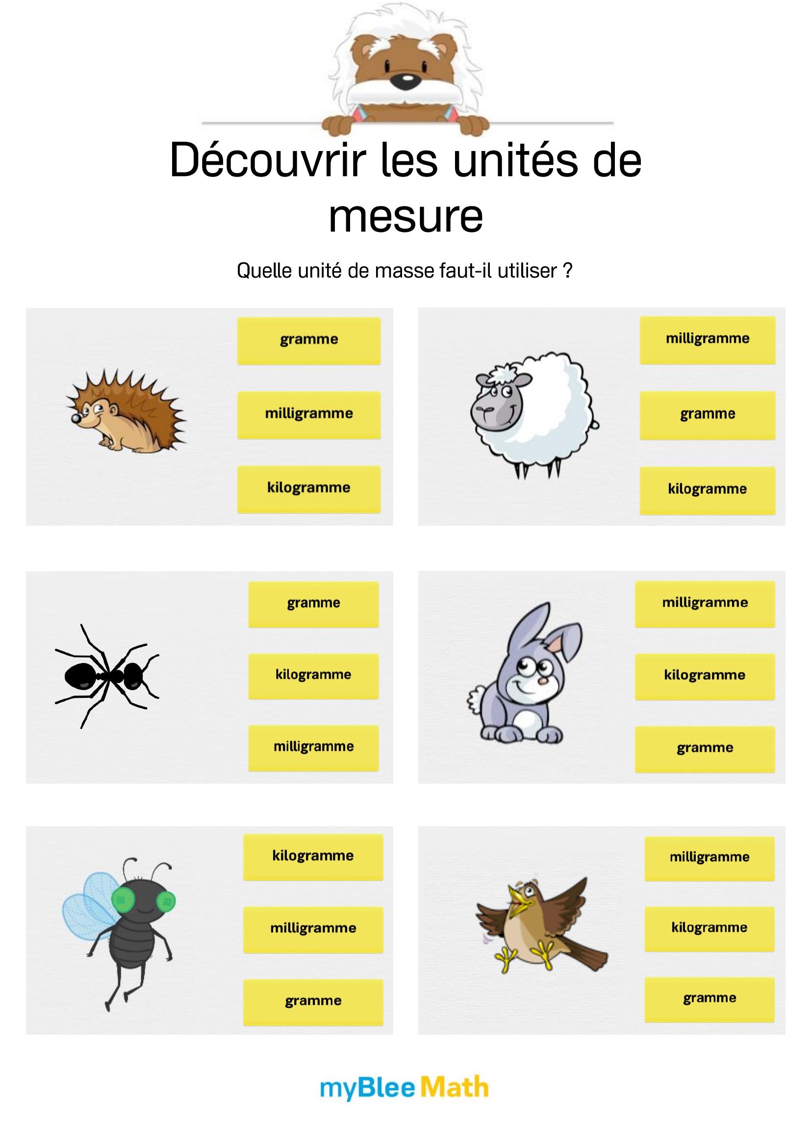 Pour accompagner l’apprentissage du volume et de la masse dès l’école primaire, l’application de maths myBlee Math est un excellent complément aux supports papier. Destinée aux élèves du primaire jusqu’à la 6e, elle propose des activités interactives pour estimer des contenances, manipuler des unités comme le litre ou le kilogramme, et réaliser des conversions simples, de manière ludique et progressive.