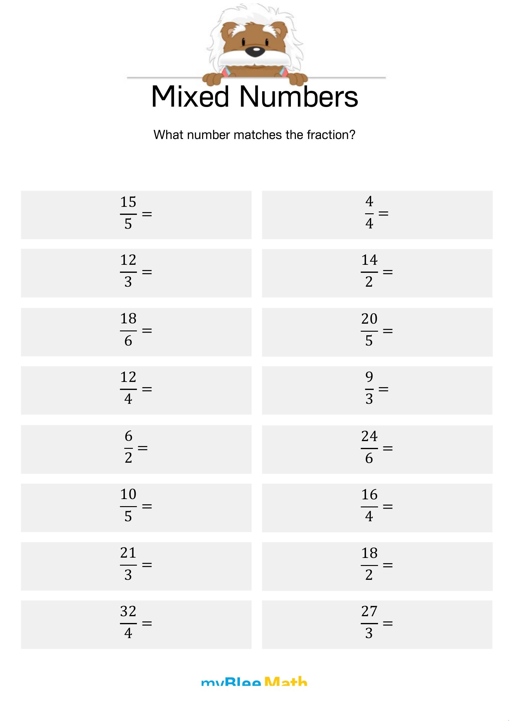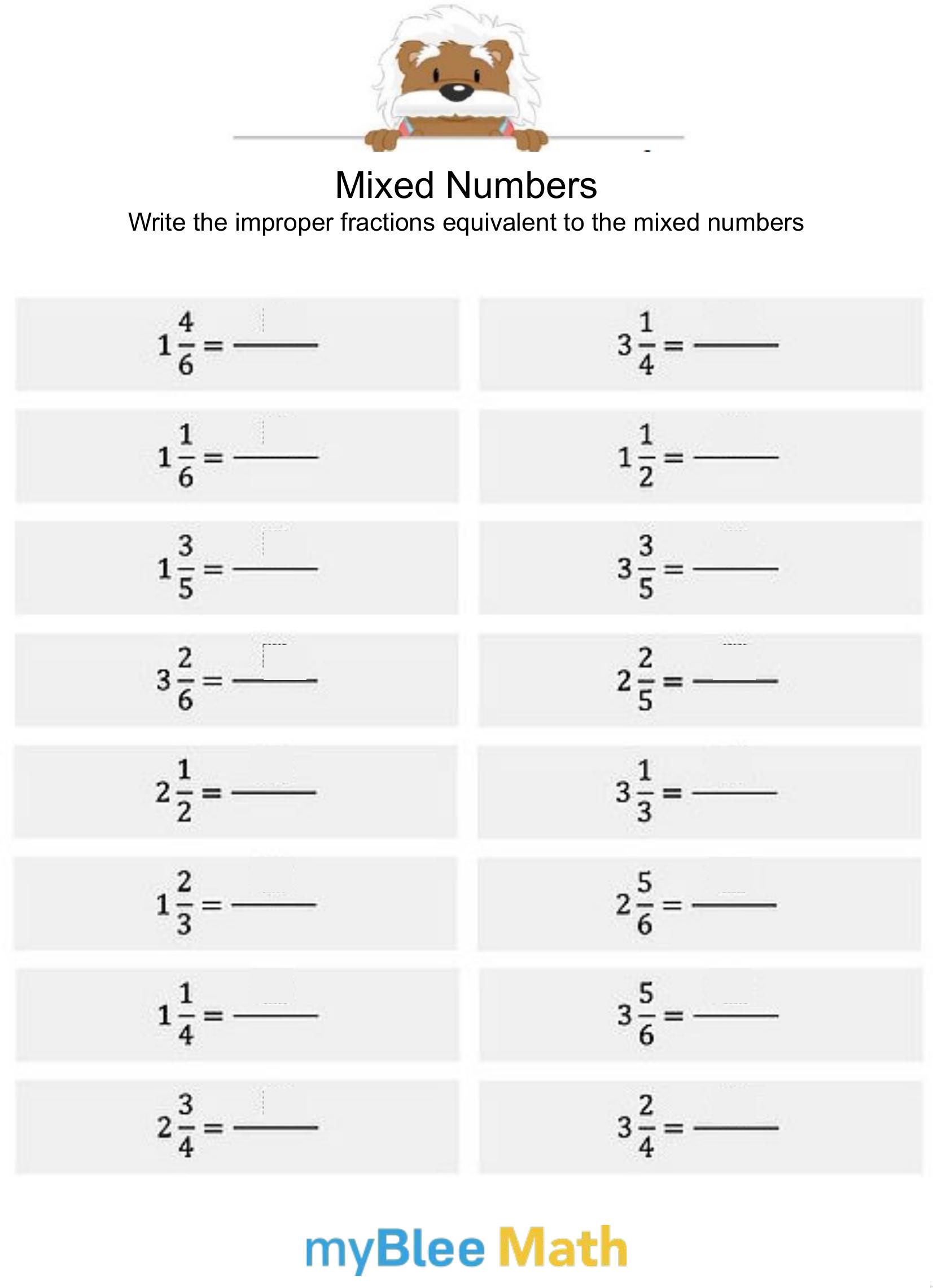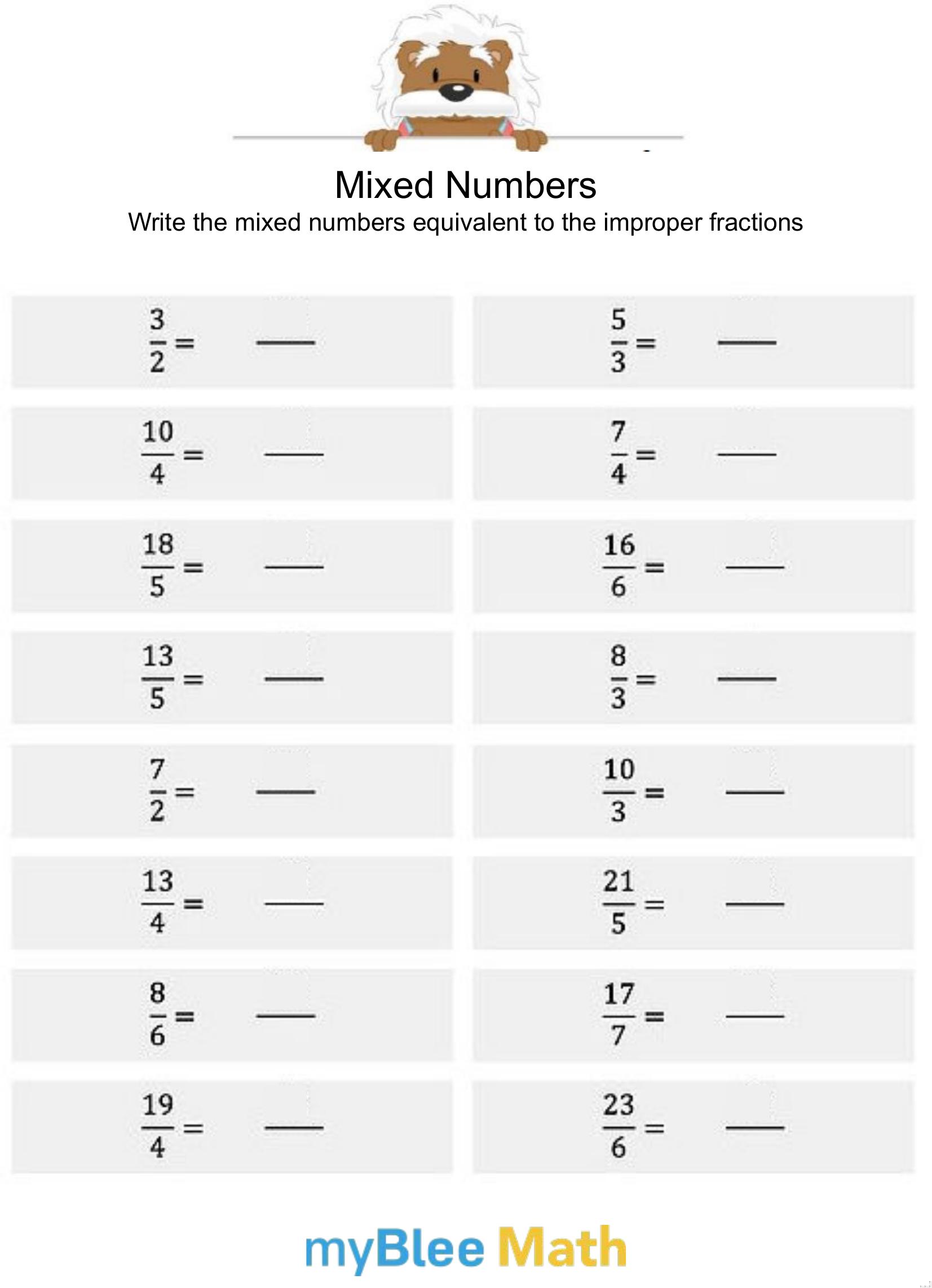 Exercises on mixed numbers help your child understand how to combine a whole number and a fraction. It’s an important step for better visualizing quantities greater than 1 but not integers.