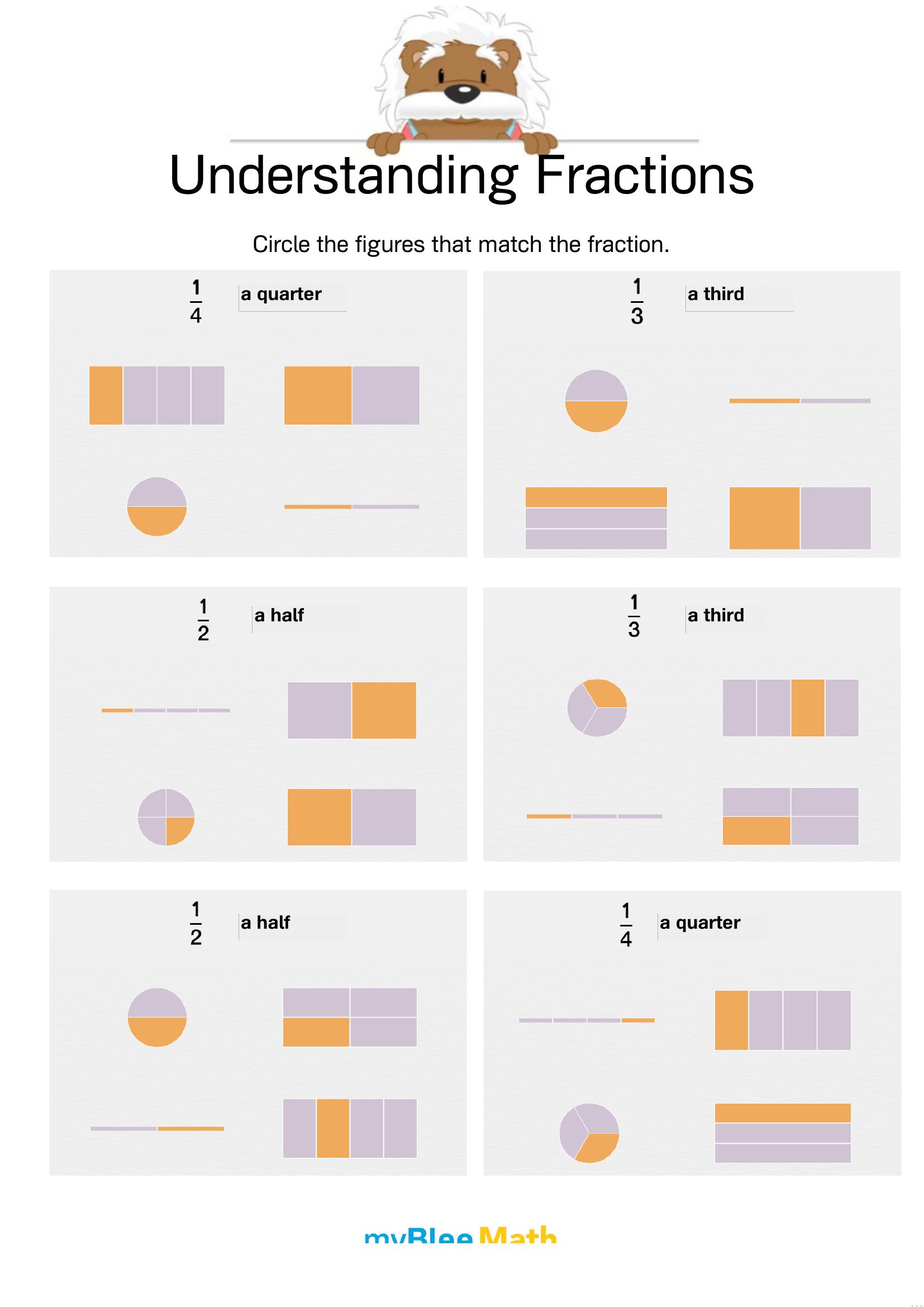 Your child learns to recognize that a fraction represents a portion of a whole.