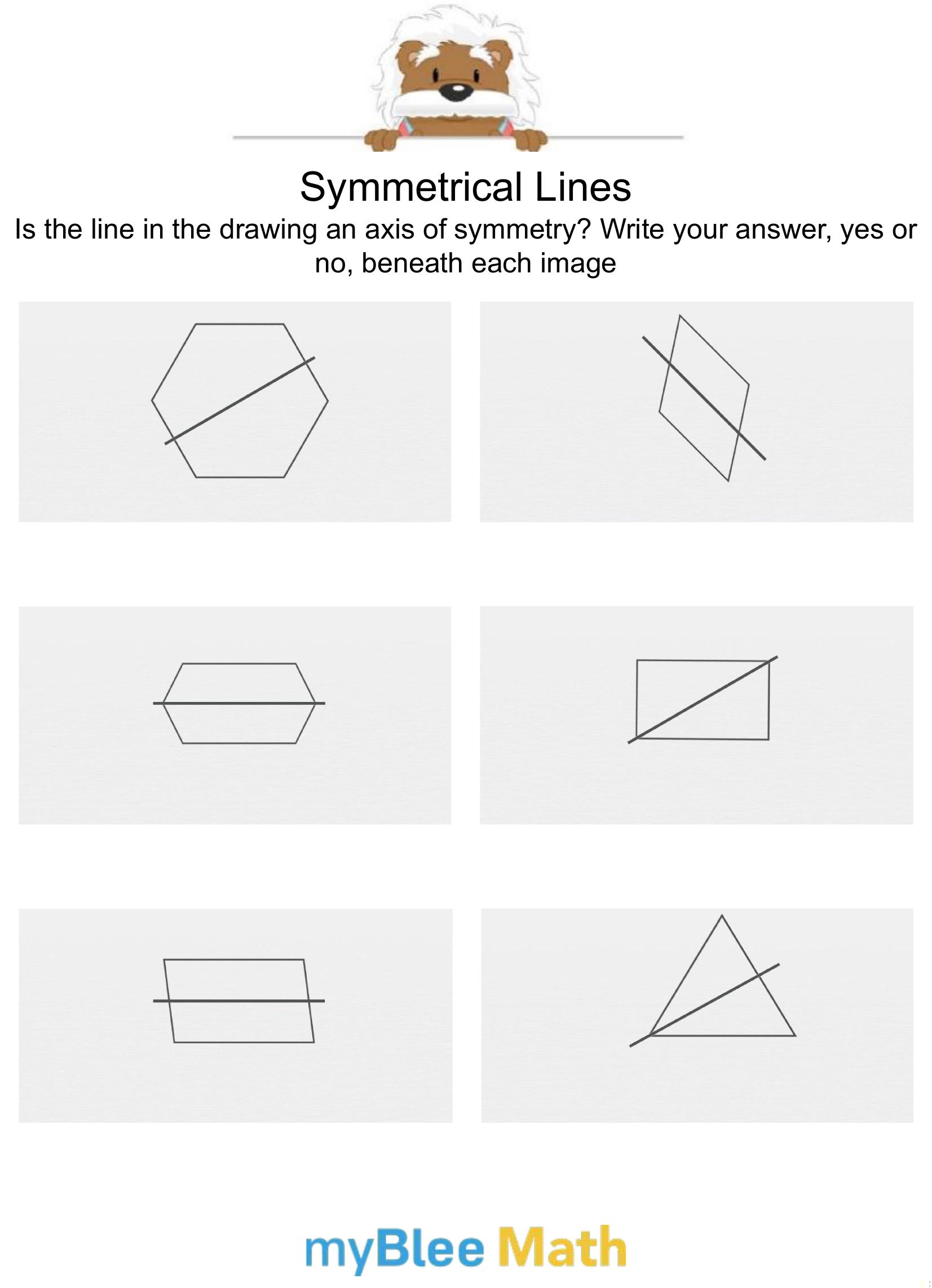 The goal of the exercise is to answer 'true' or 'false' if the line drawn through a shape is a line of symmetry.