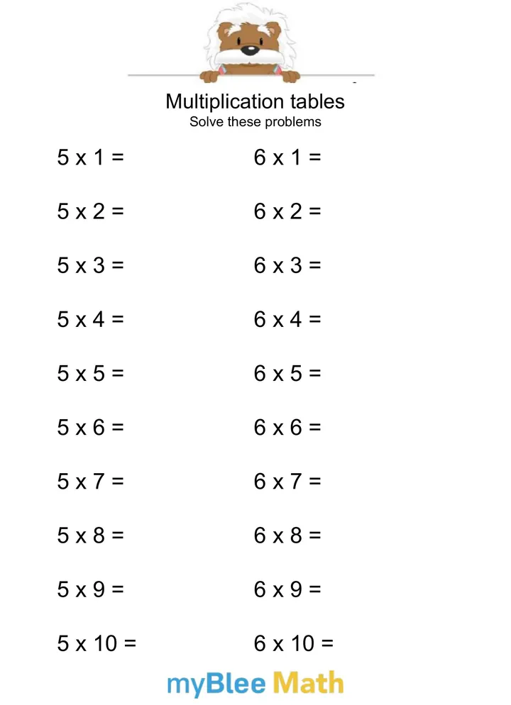 The goal of the exercise is to review the multiplication tables for 5 and 6.