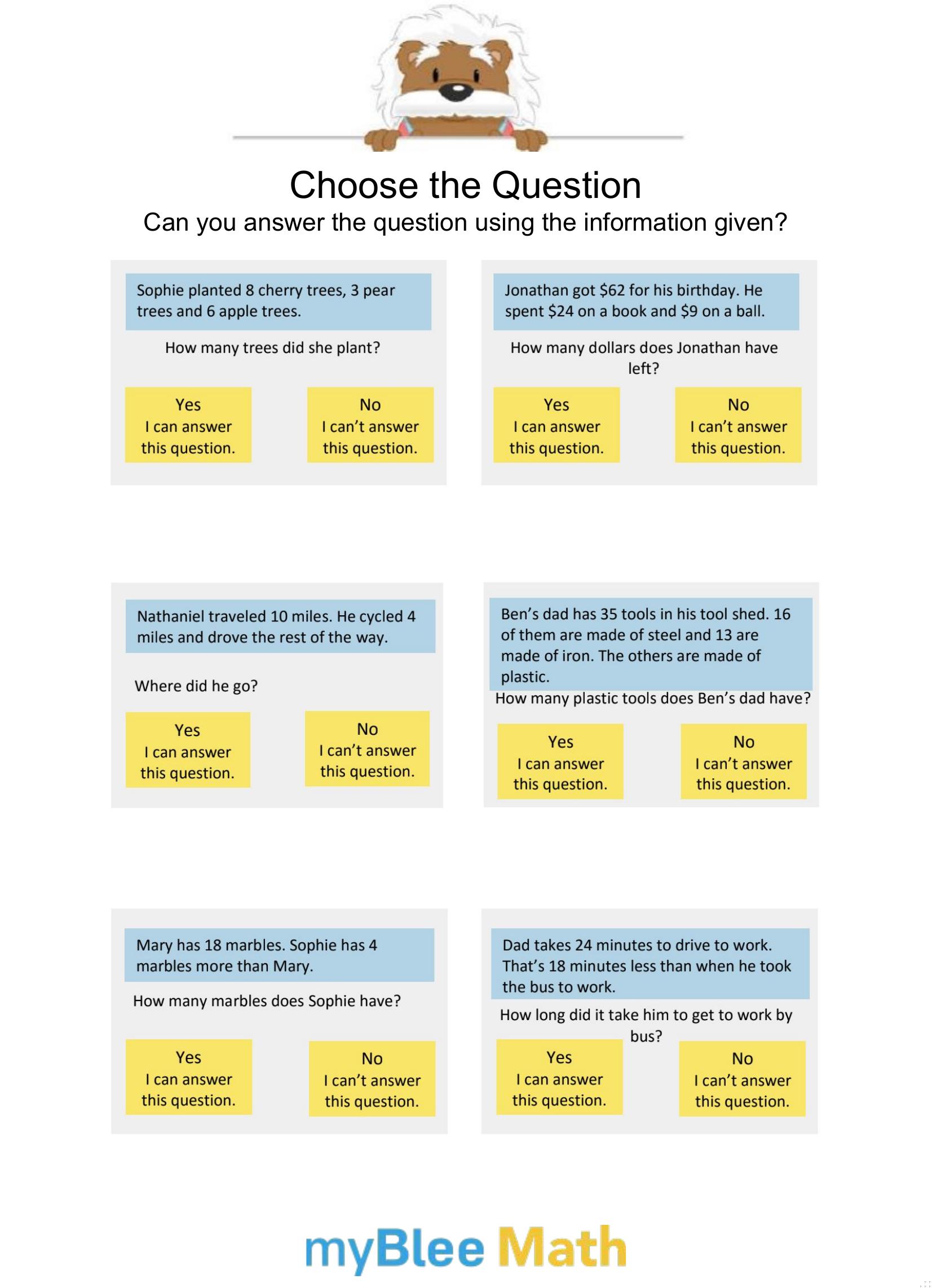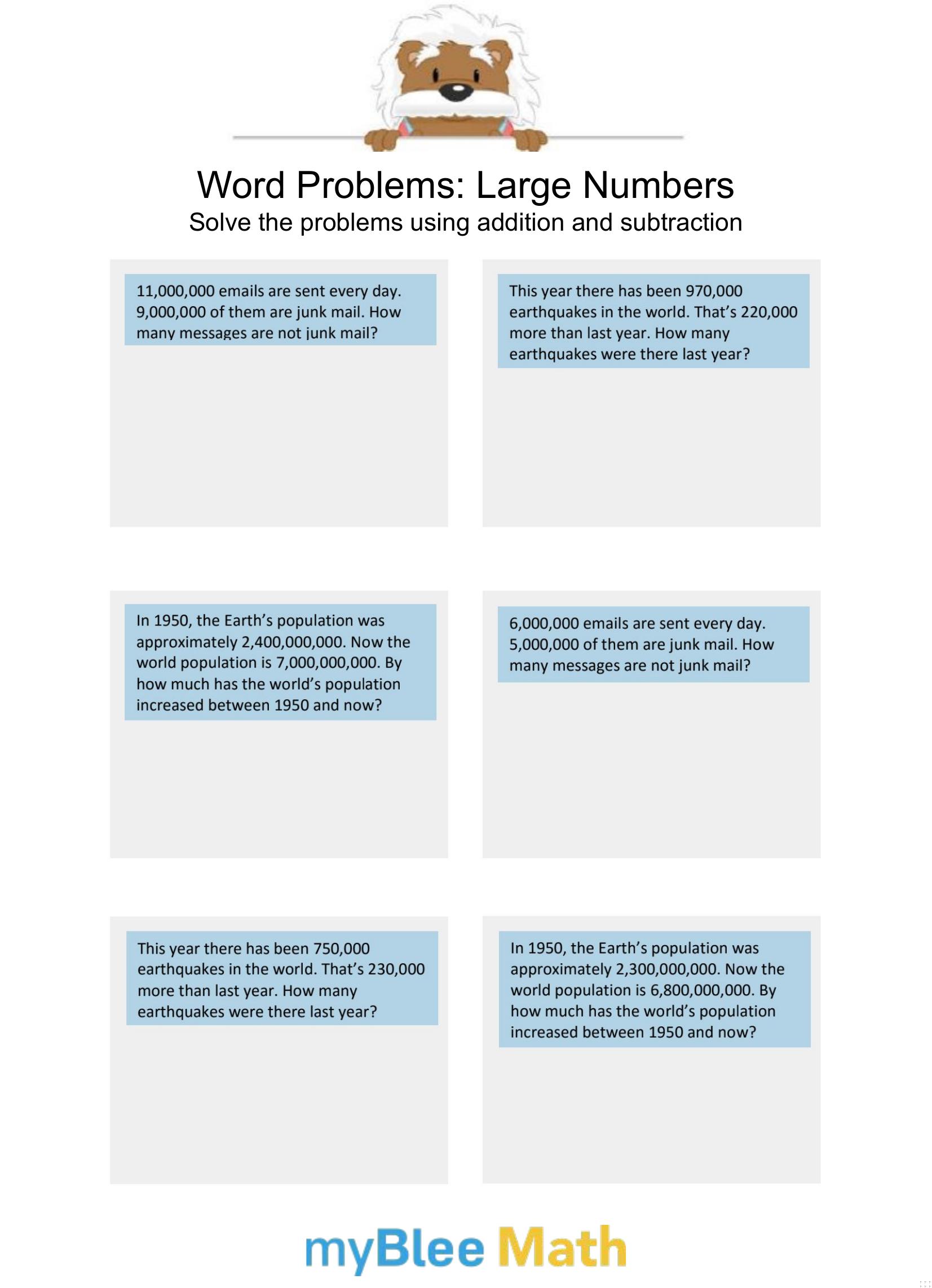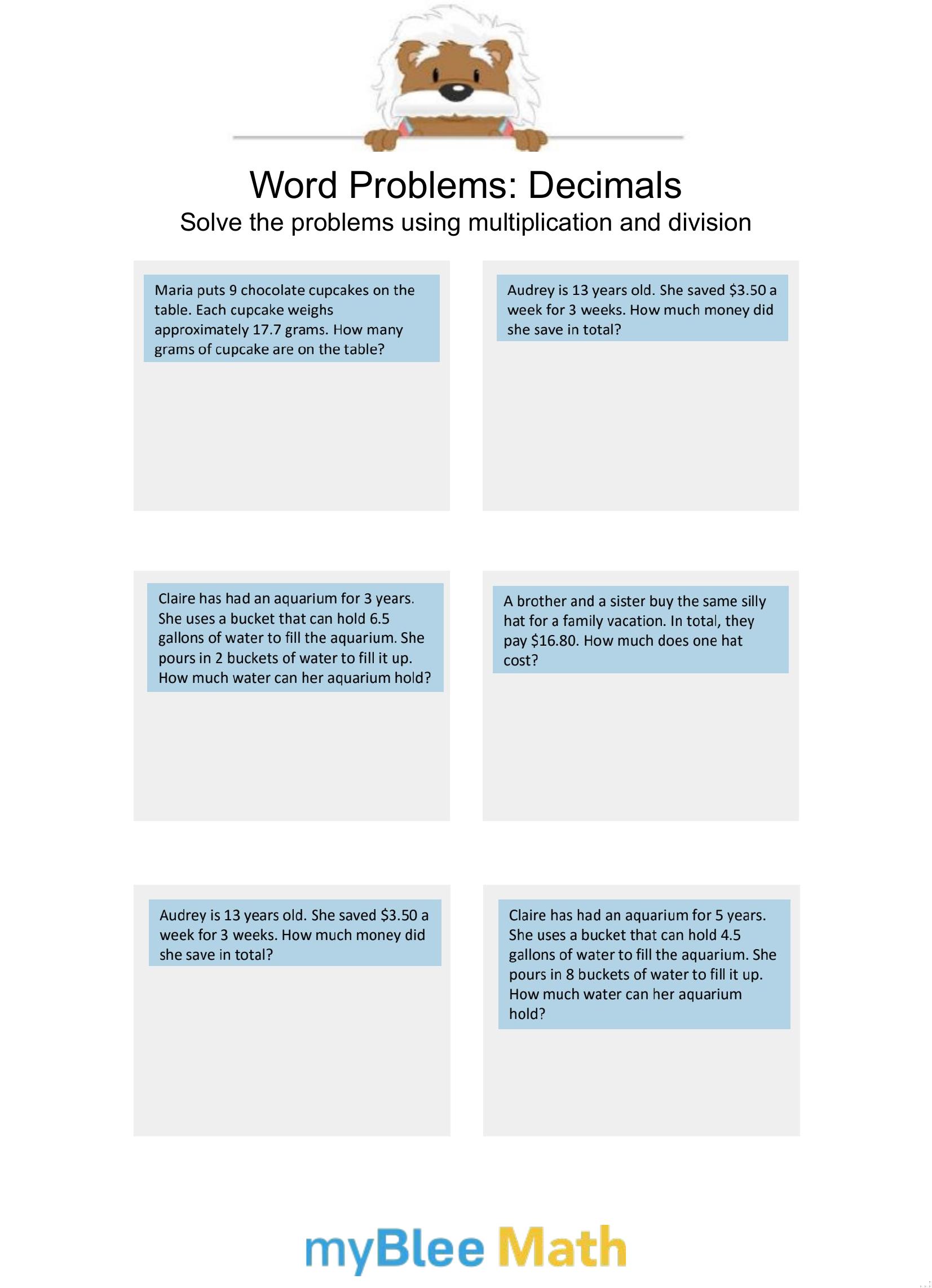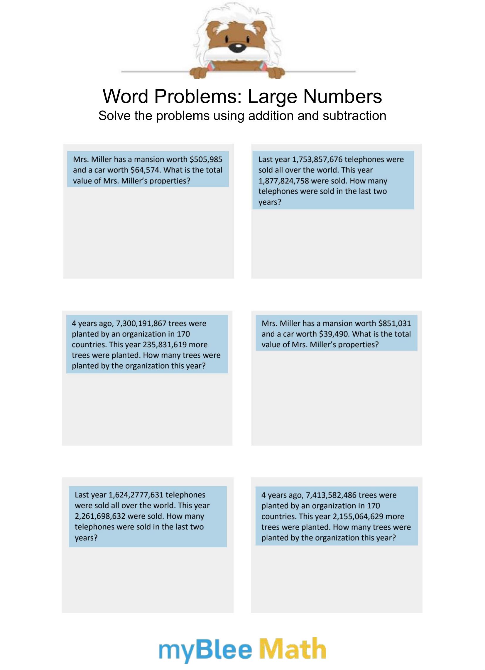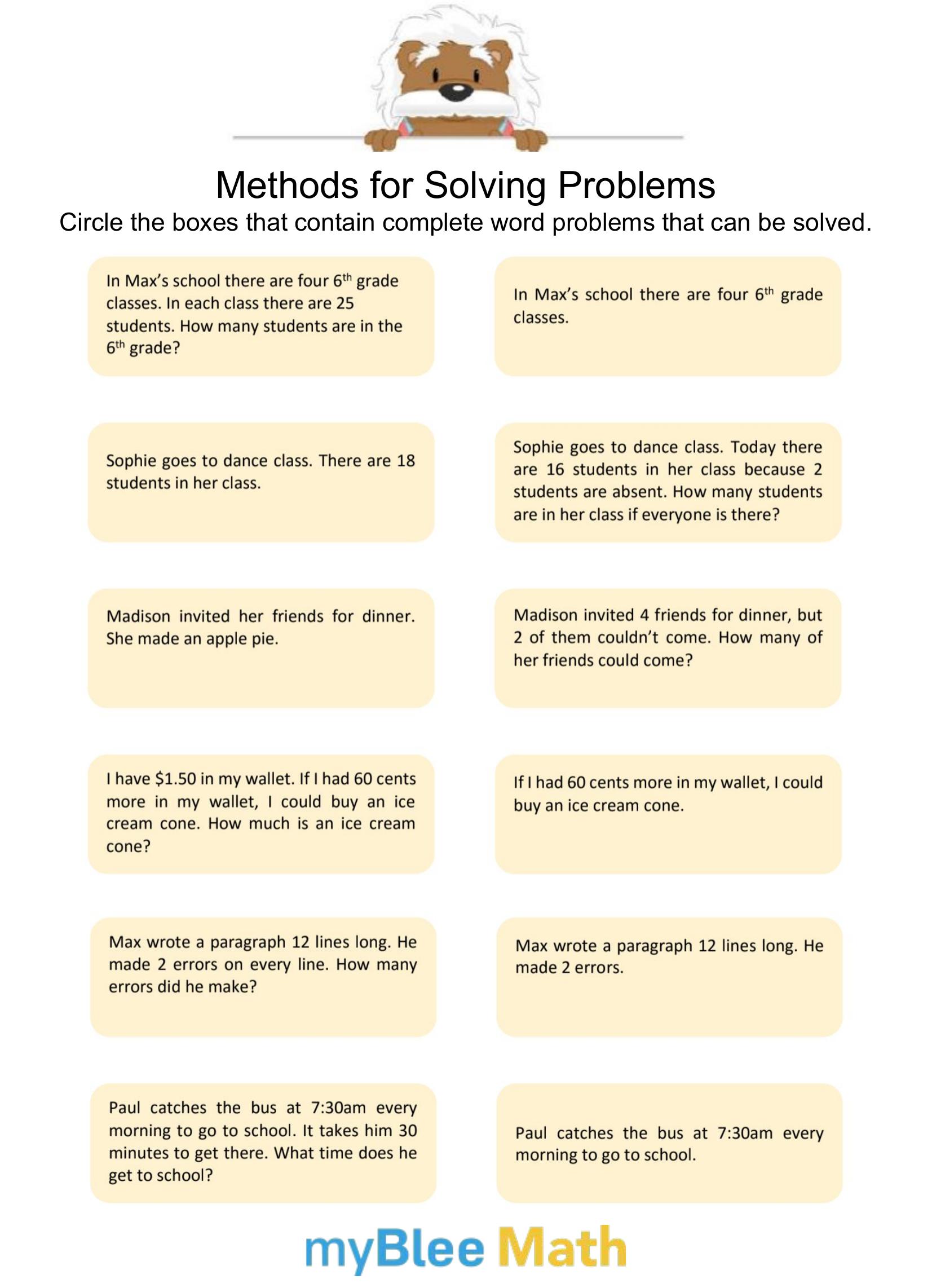 math problems require understanding a wording, identifying useful information and choosing the correct operation. To support this progression, we offer problem worksheets adapted to all grade levels.