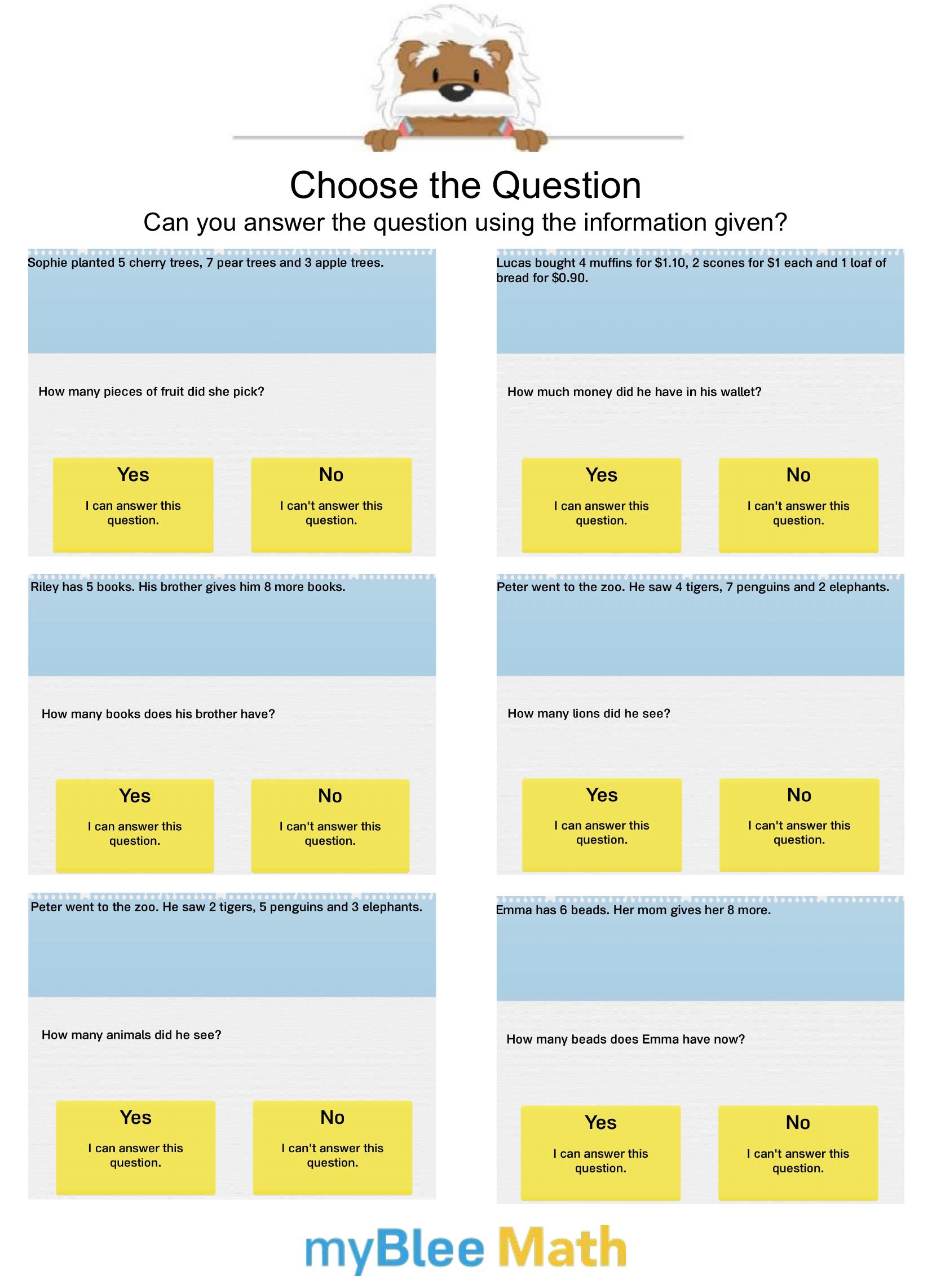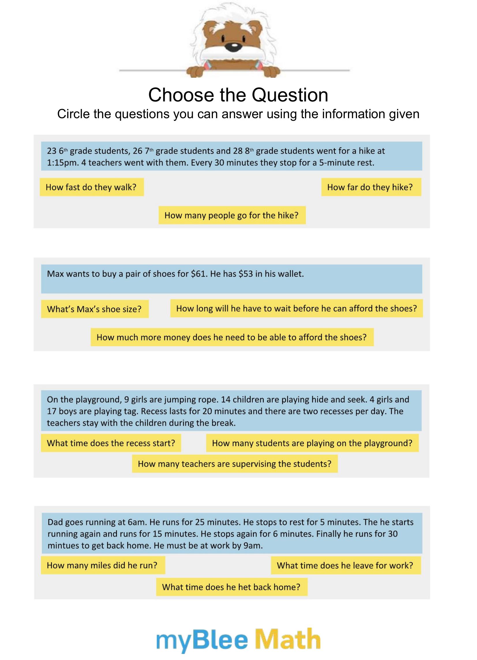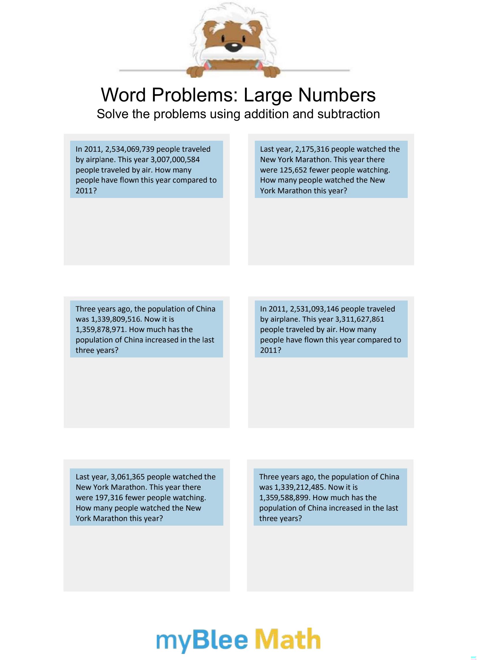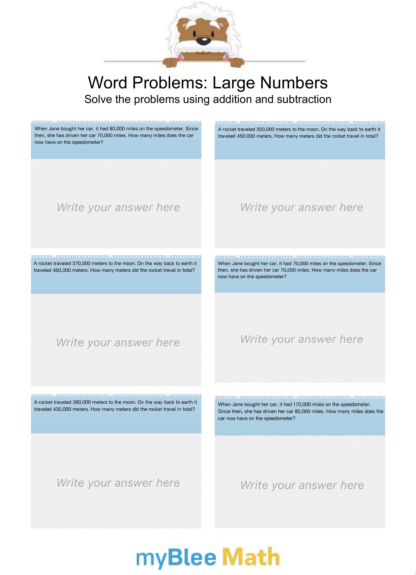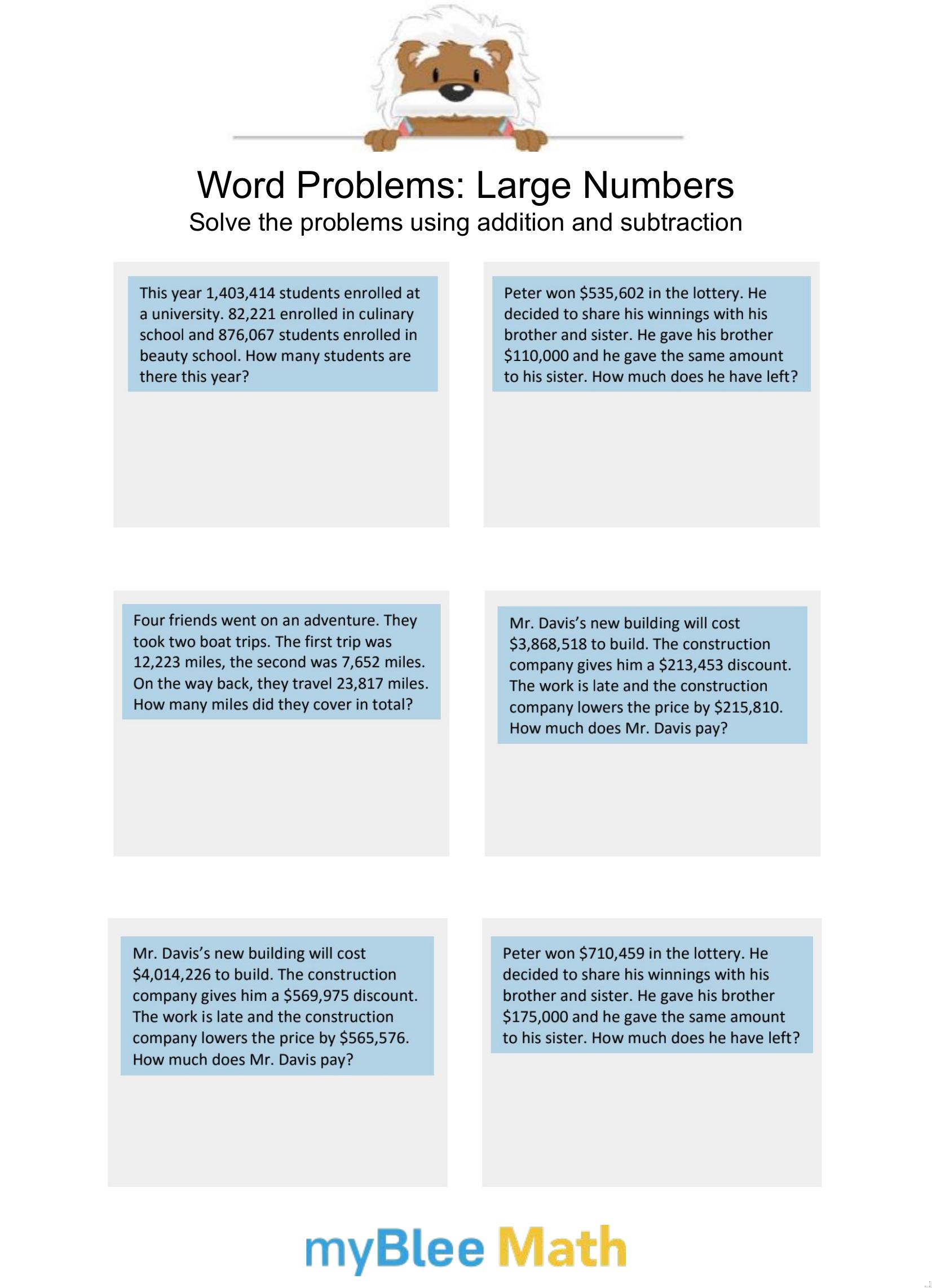 math problems require understanding a wording, identifying useful information and choosing the correct operation. To support this progression, we offer problem worksheets adapted to all grade levels.