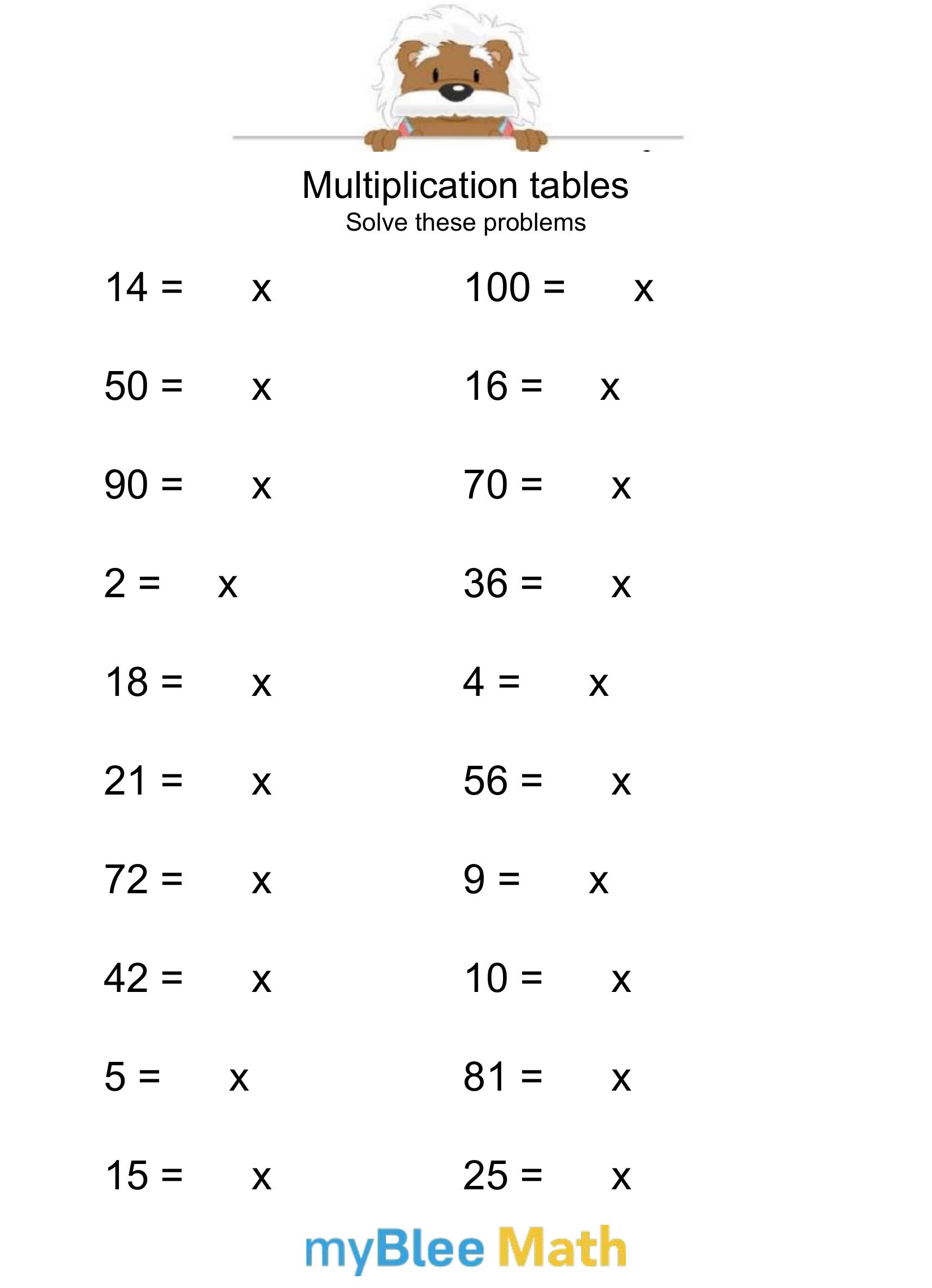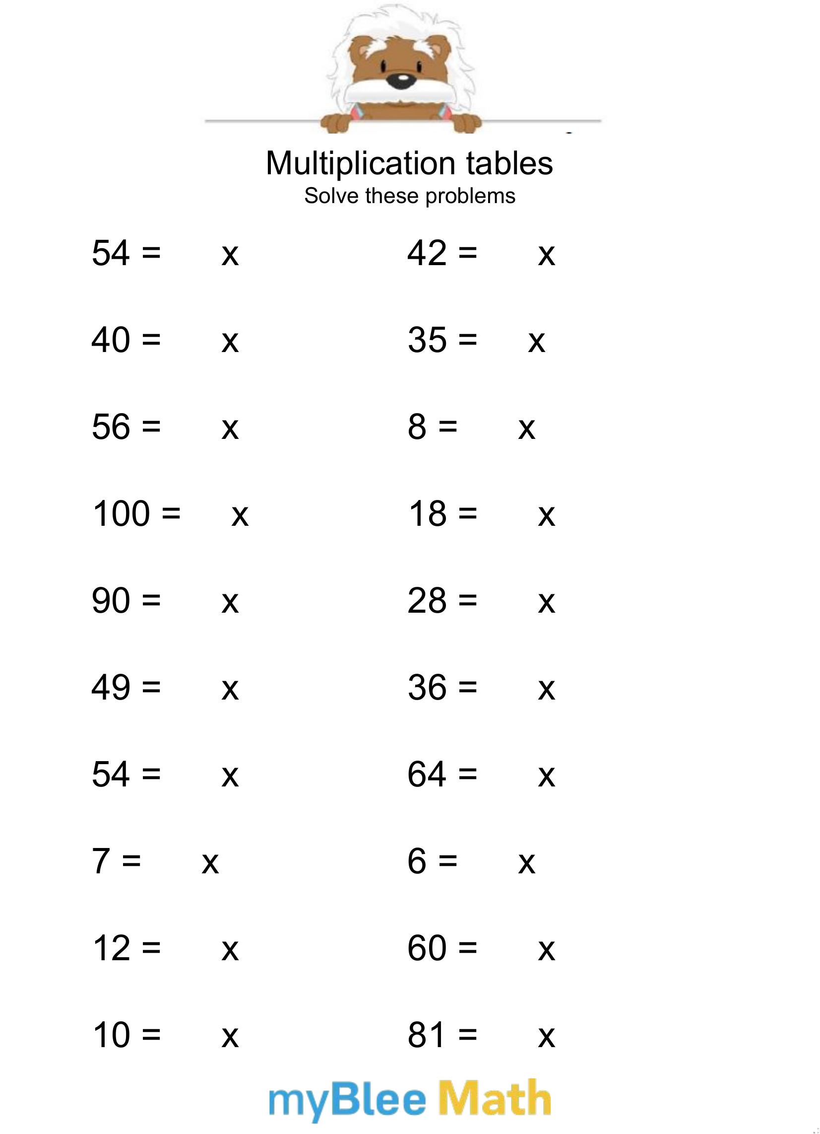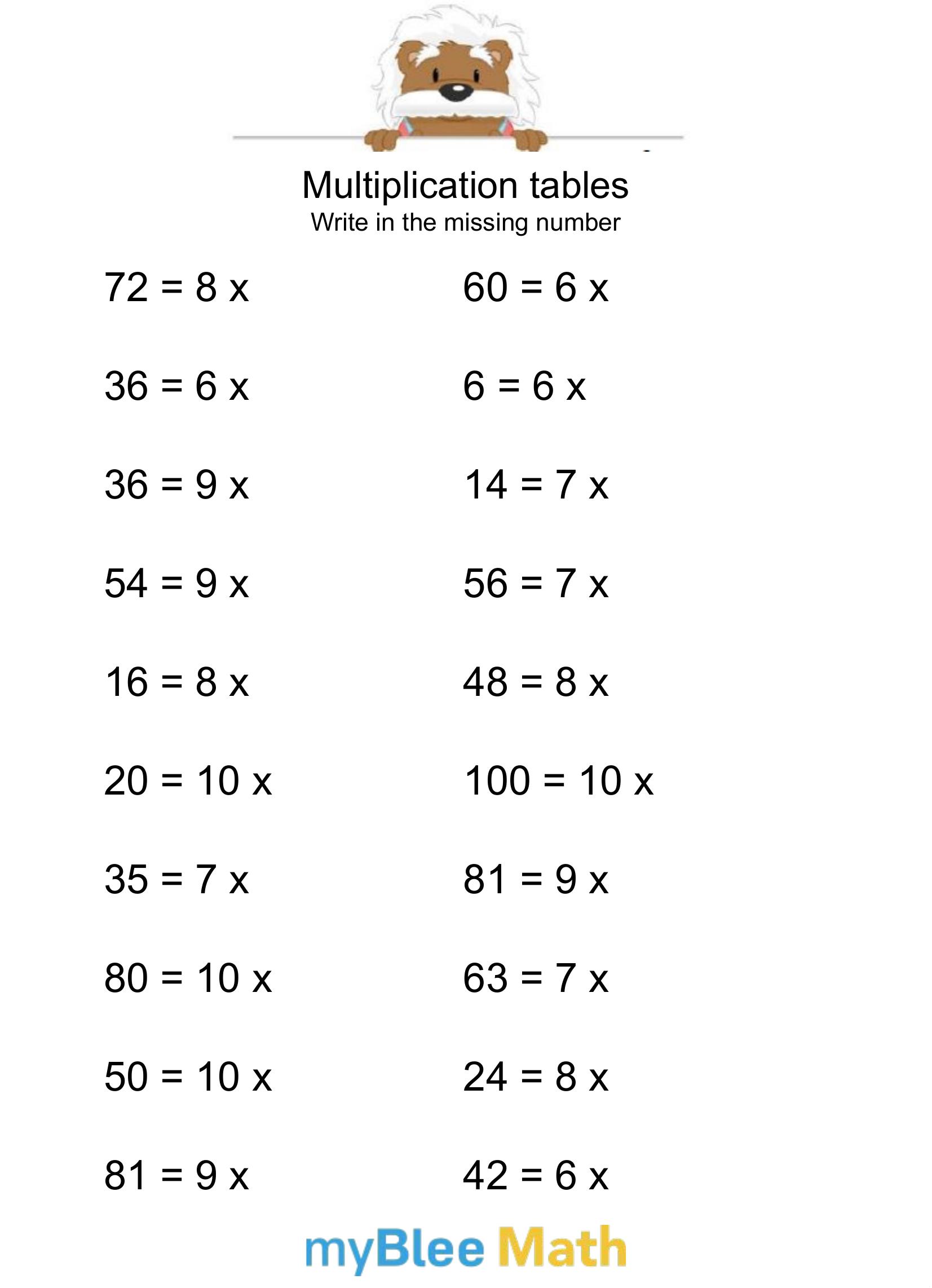 These worksheets allow you to review a multiplication table a specific table or several mixed tables depending on the student’s grade level.