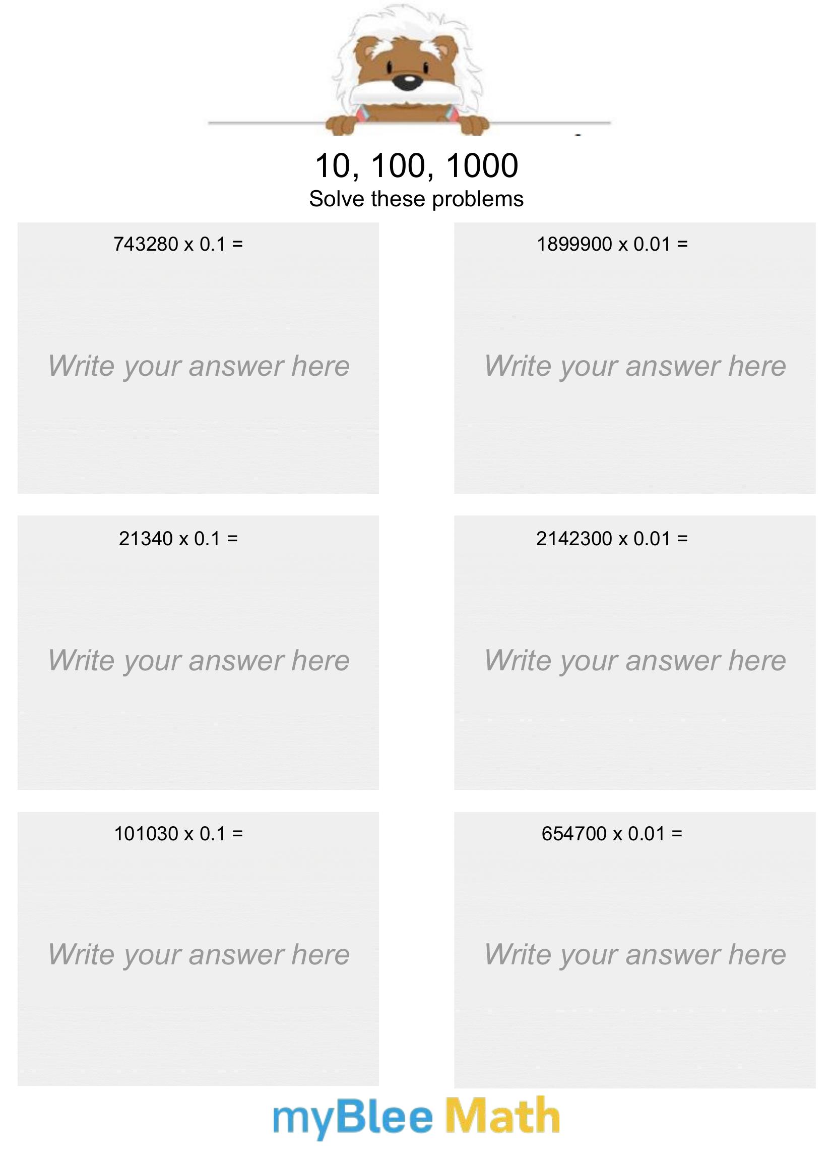 Multiplying by 10, 100 or 1000 helps understand how a number shifts when adding a zero.