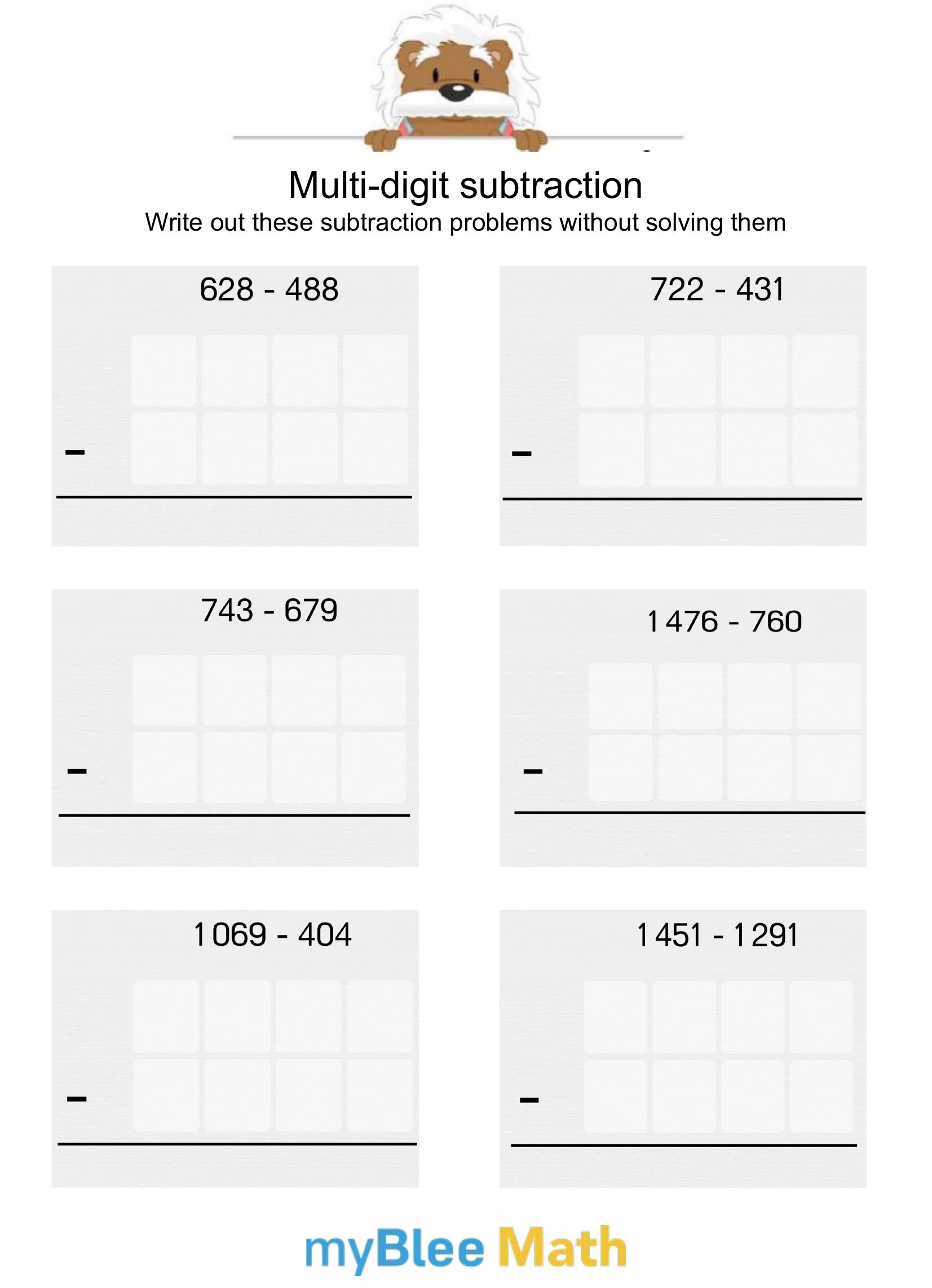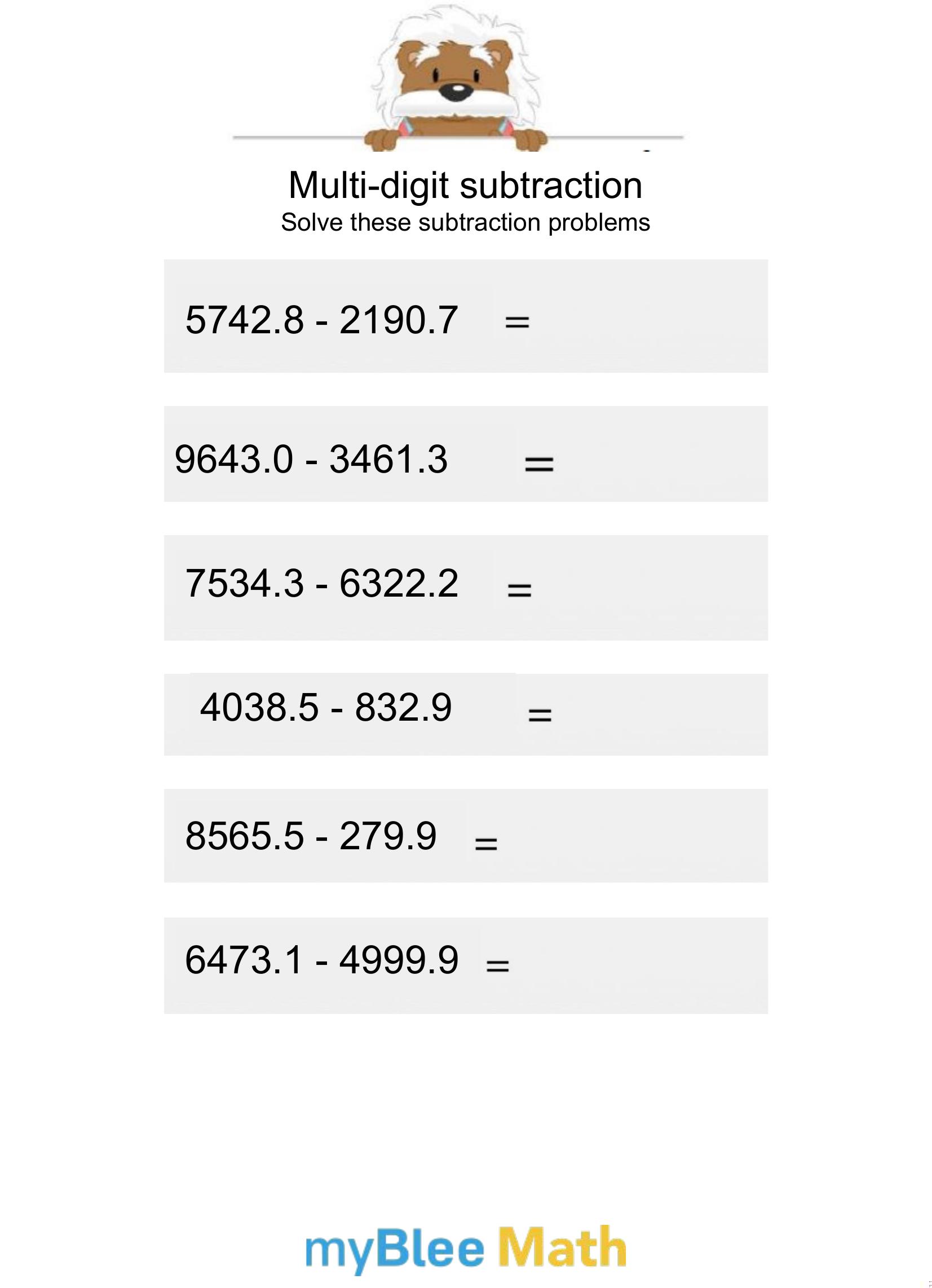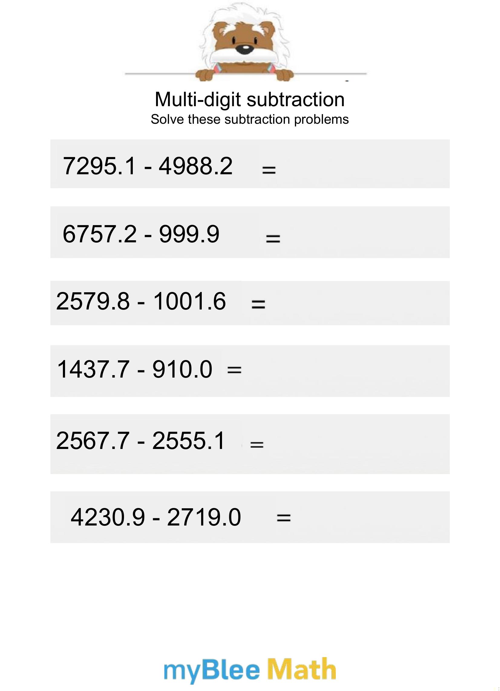 To go further, offer multi-digit subtractions. They are perfect for math exercises for 4th grade or 5th grade students. They strengthen methodology, endurance, and precision. Children often love these exercises because they feel they’re accomplishing something “bigger.”