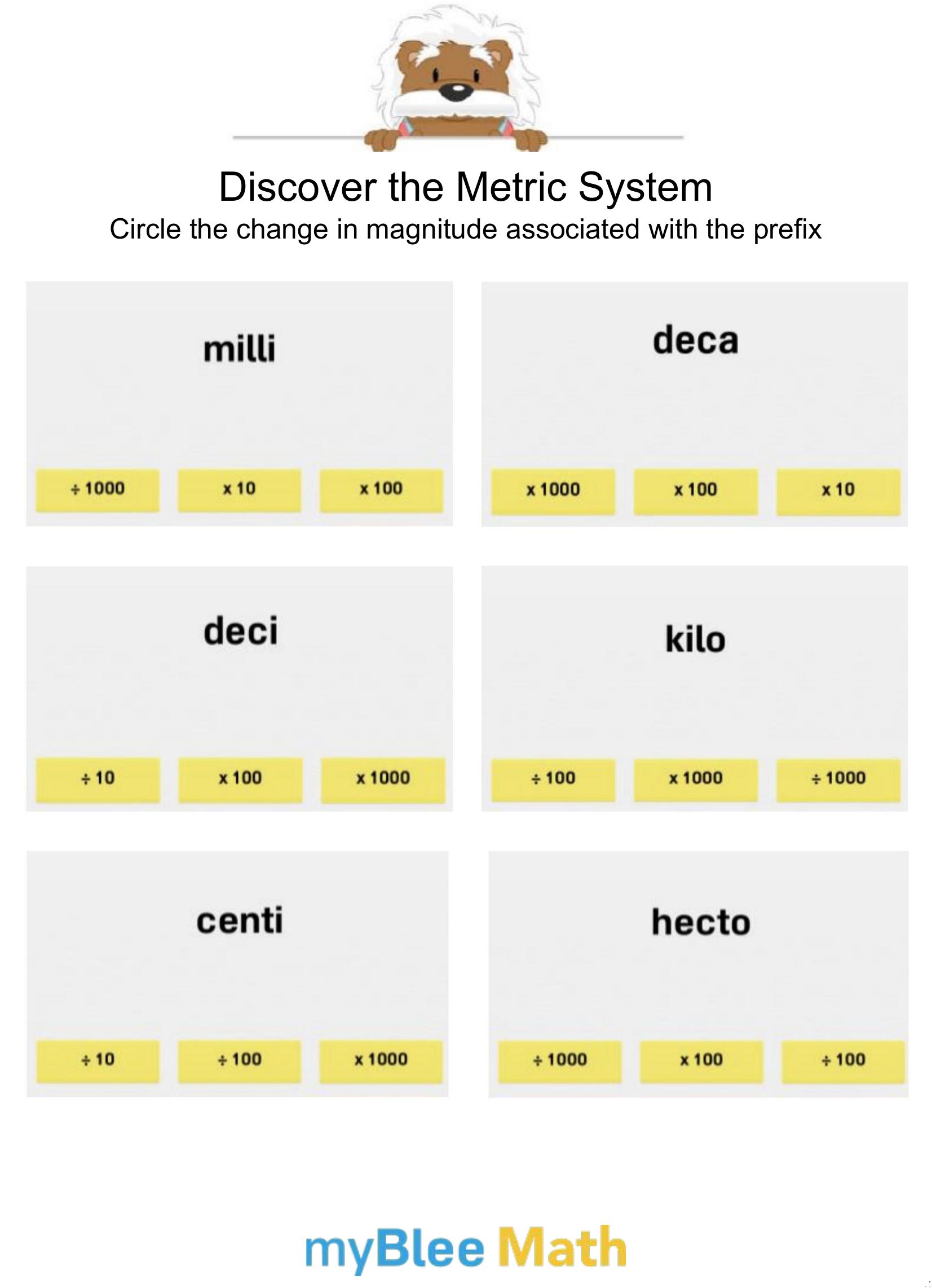 The goal of the exercise is to know which prefix corresponds to which change in magnitude.