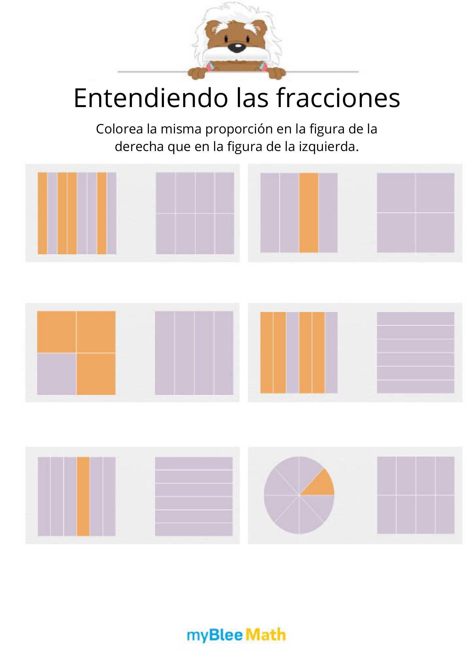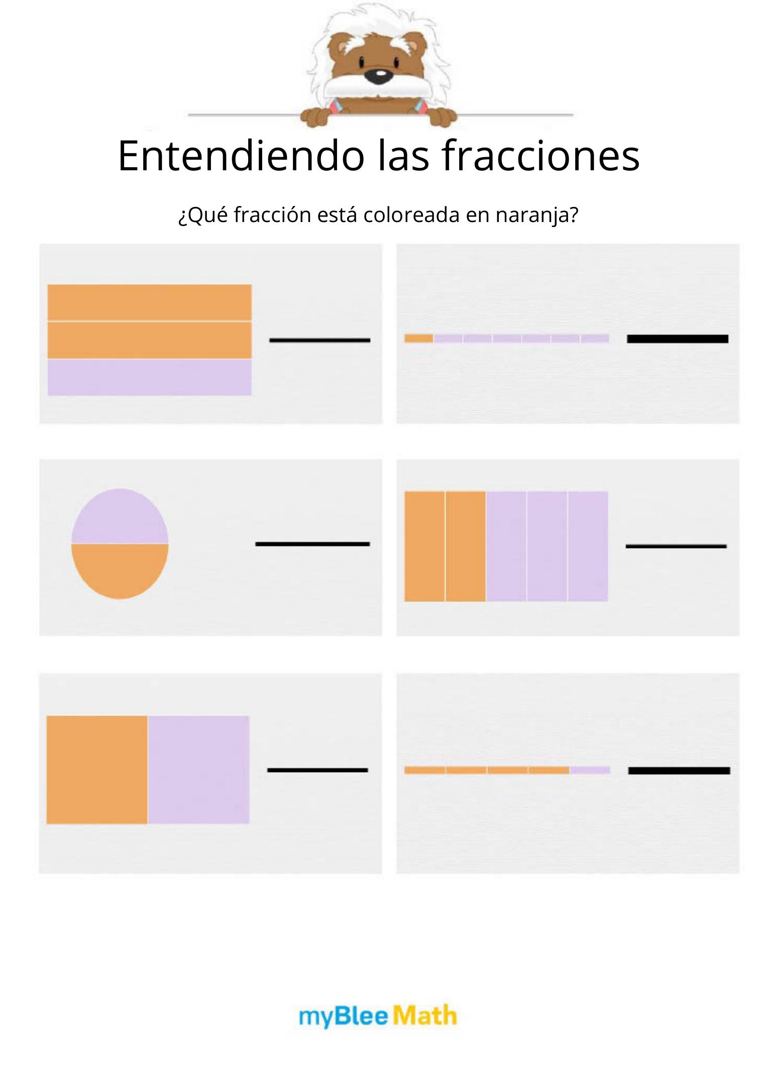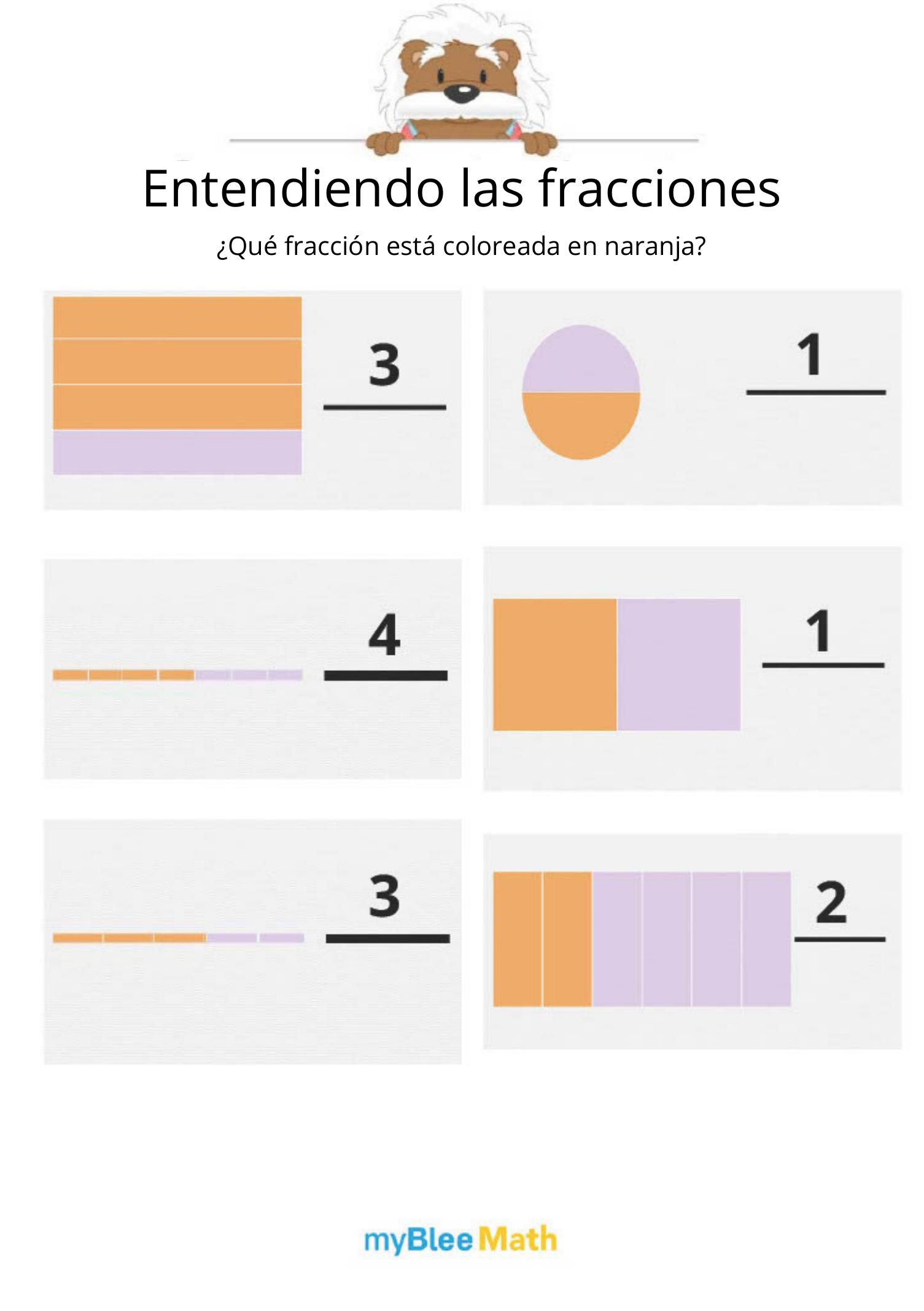 Su hijo aprende a reconocer que una fracción representa una porción de un todo.