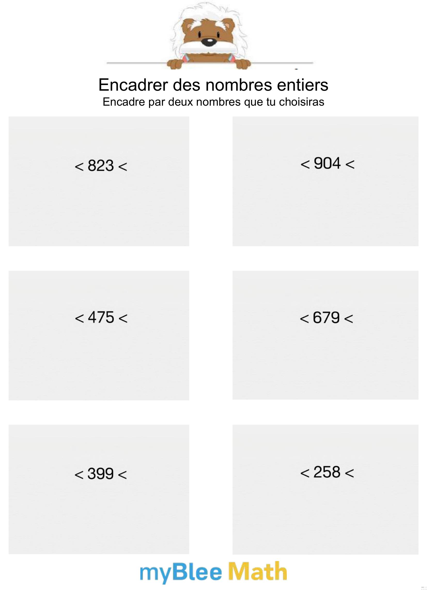 Le but de l'exercice est de choisir deux nombres qui encadrent le nombre proposé.