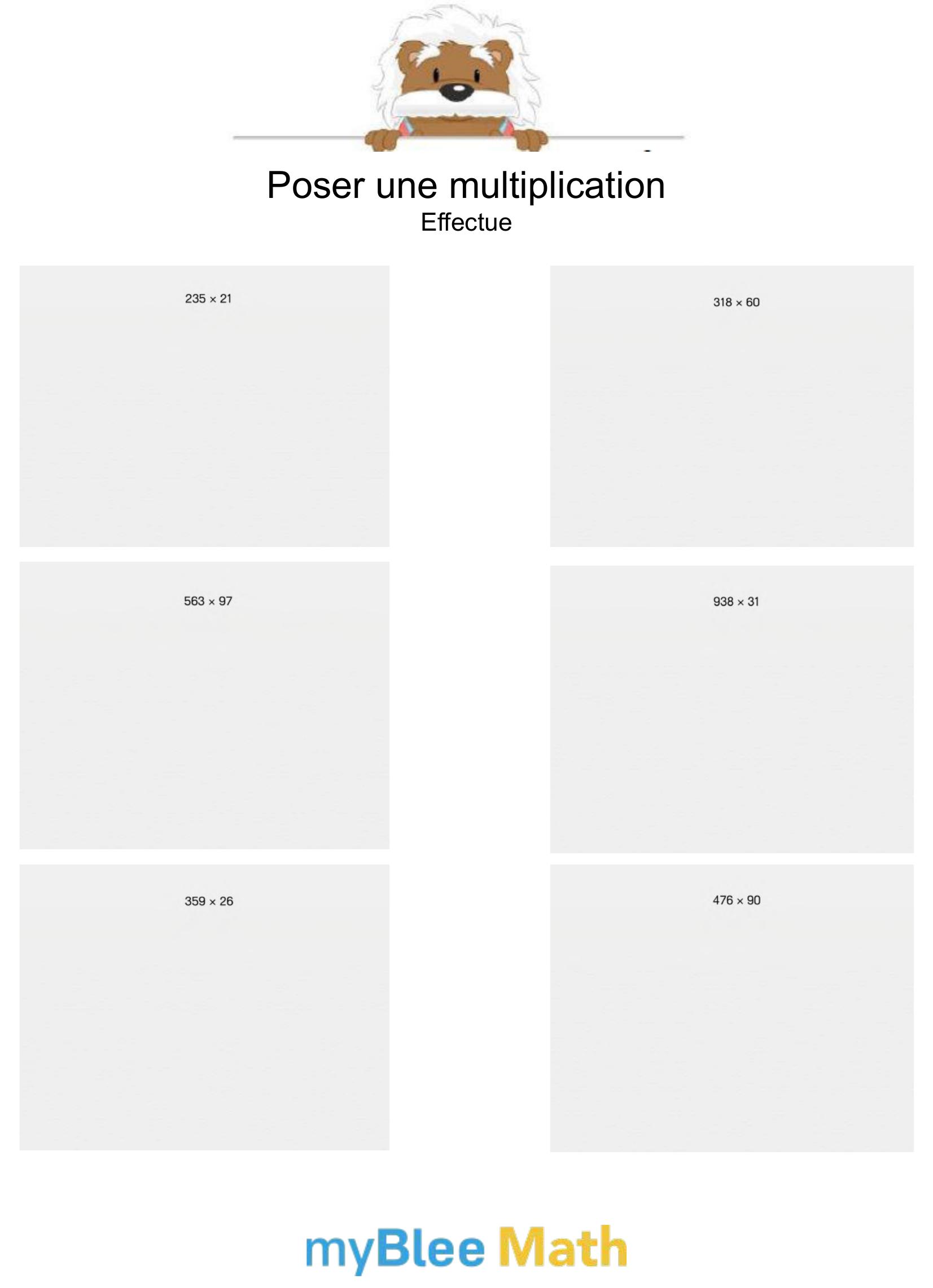 Le but de l'exercice est de multiplier un nombre à deux chiffres par un nombre à trois chiffres.