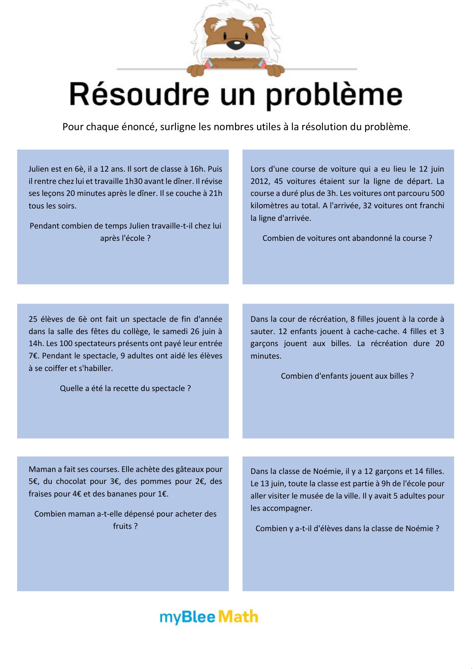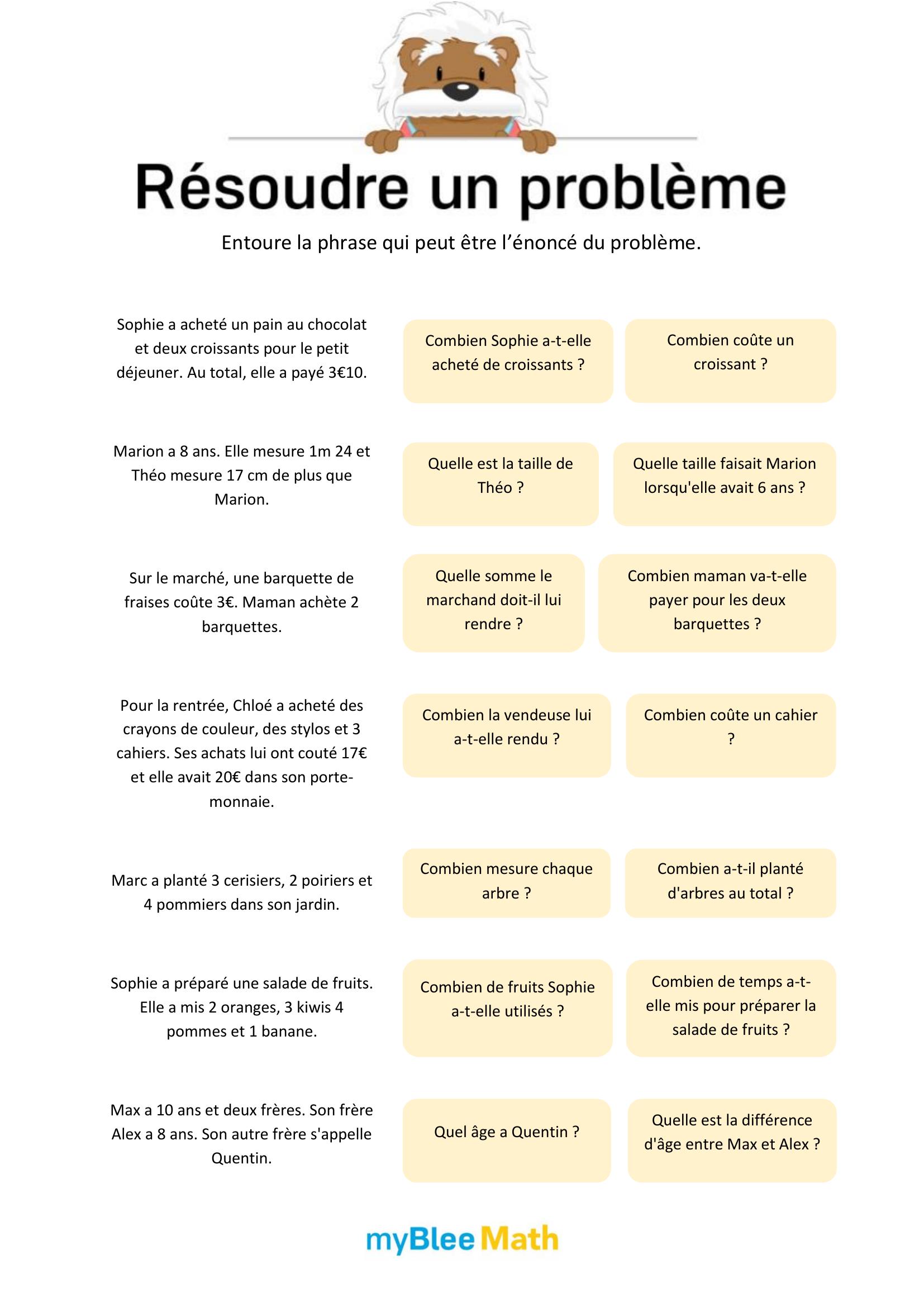Les problèmes en mathématiques demandent de comprendre un énoncé, d’identifier les informations utiles et de choisir la bonne opération. Pour accompagner cette progression, nous proposons des fiches de problèmes adaptées à tous les niveaux d’élèves.
