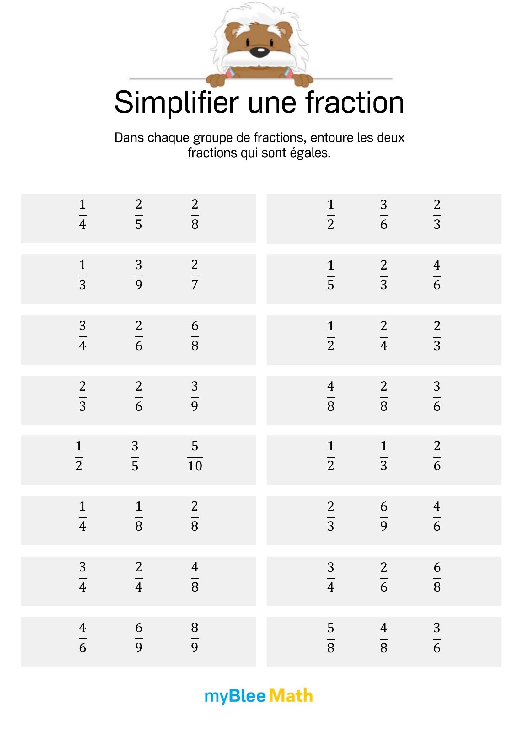 Chaque fiche est disponible en PDF à imprimer, et peut être utilisée en autonomie à la maison ou en classe. Les activités proposées couvrent différents aspects : fractions équivalentes, lecture de fractions, représentation graphique, liens avec les nombres décimaux, ou encore situations concrètes à résoudre.