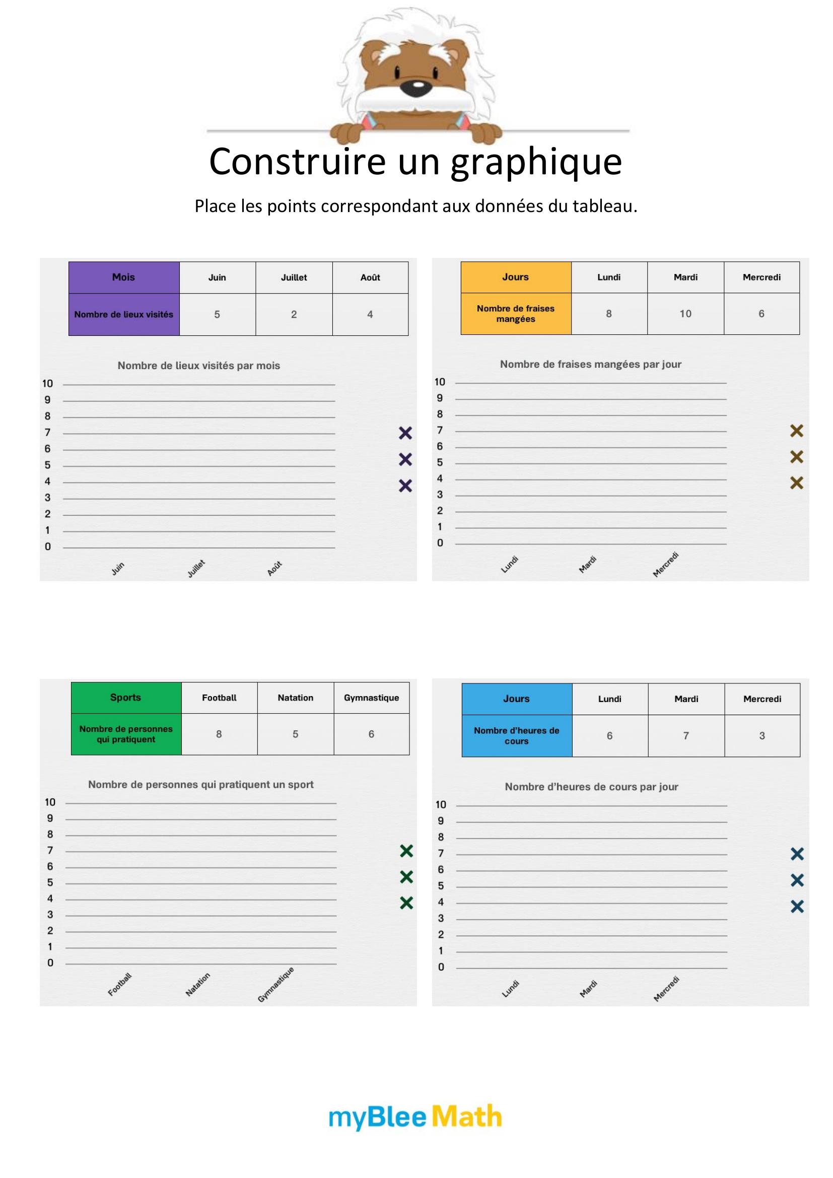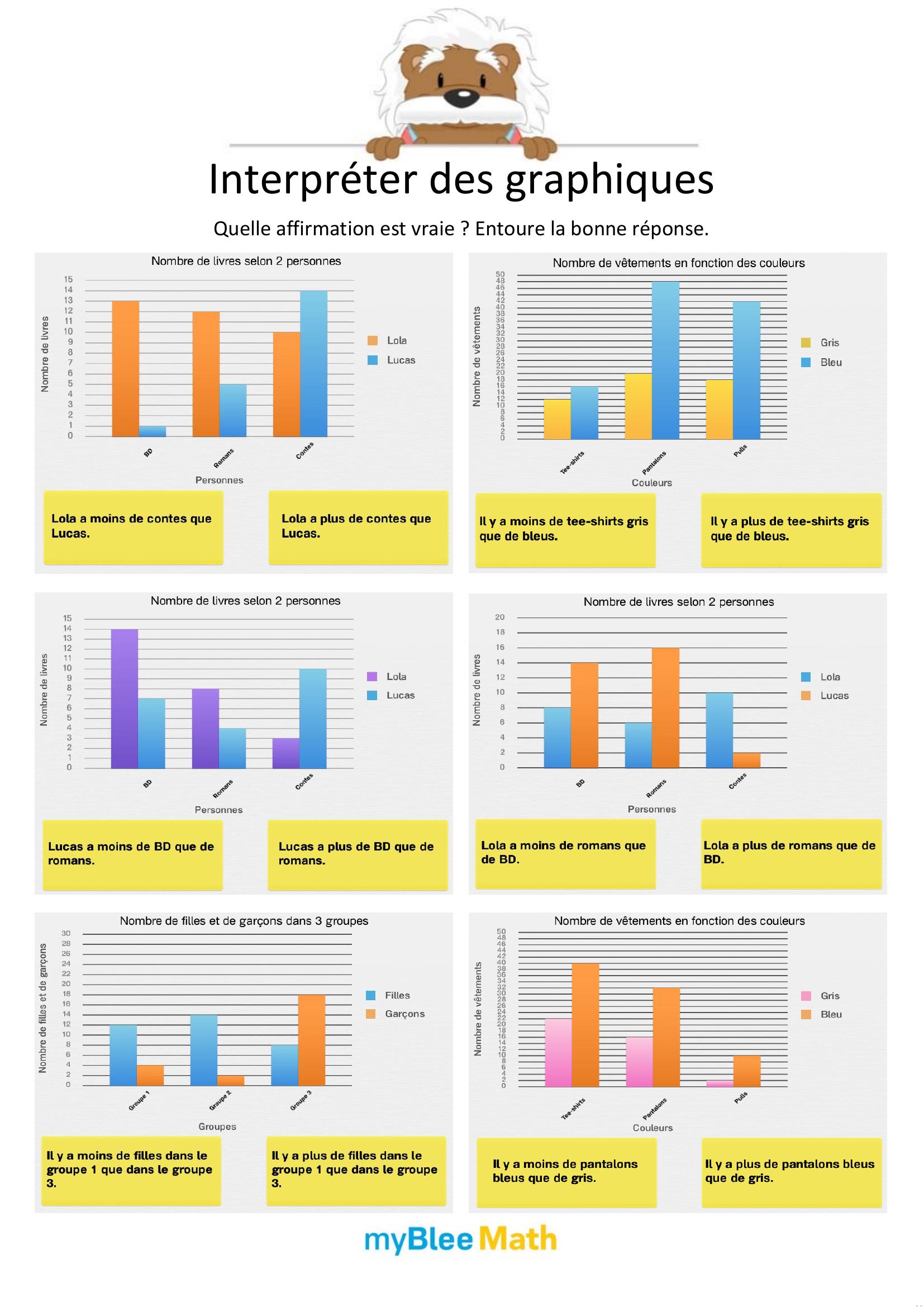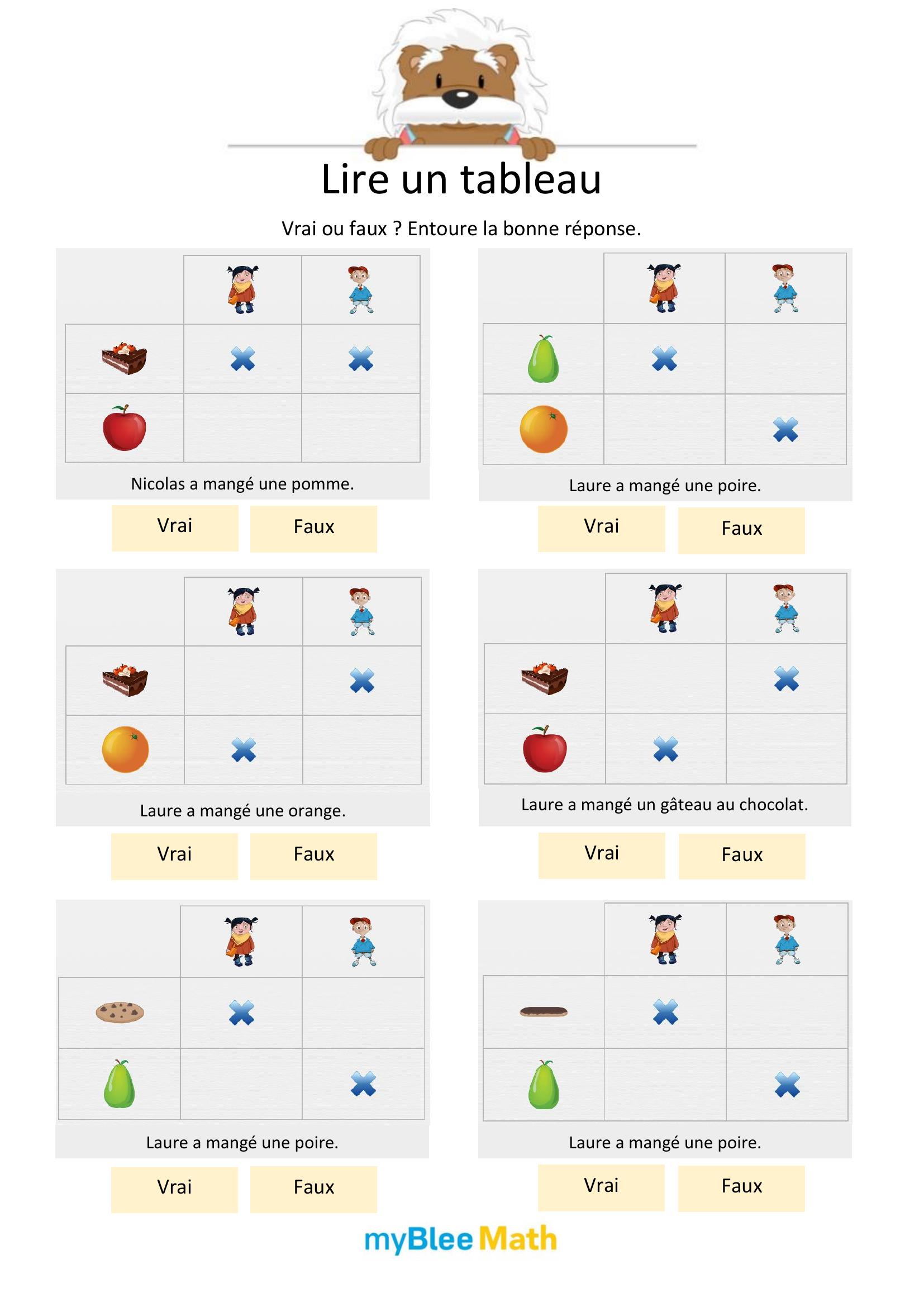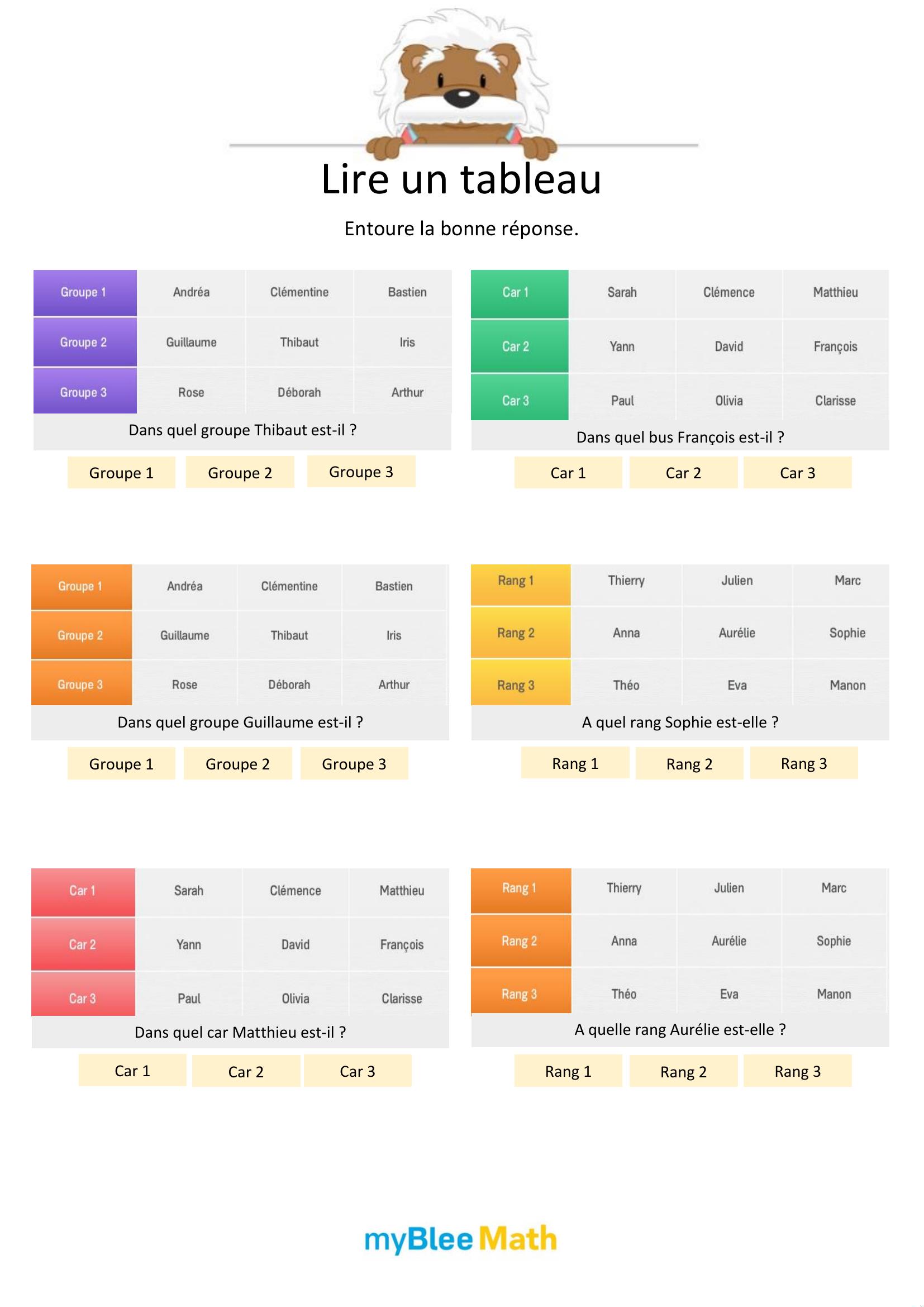 Apprenez à lire et interpréter des tableaux et graphiques avec nos exercices ludiques et progressifs. Des activités claires pour maîtriser ces outils dès le primaire avec myBlee Math.