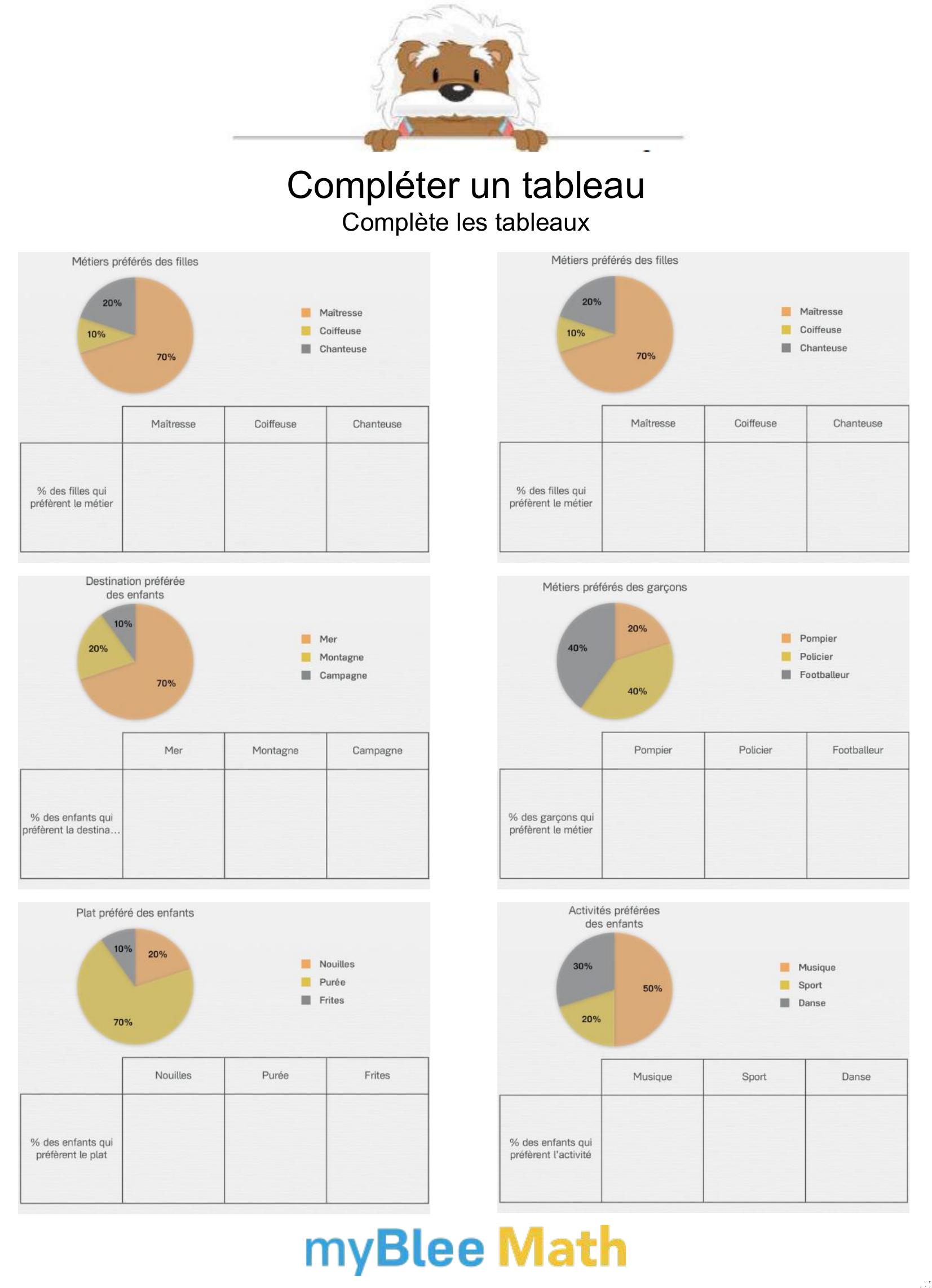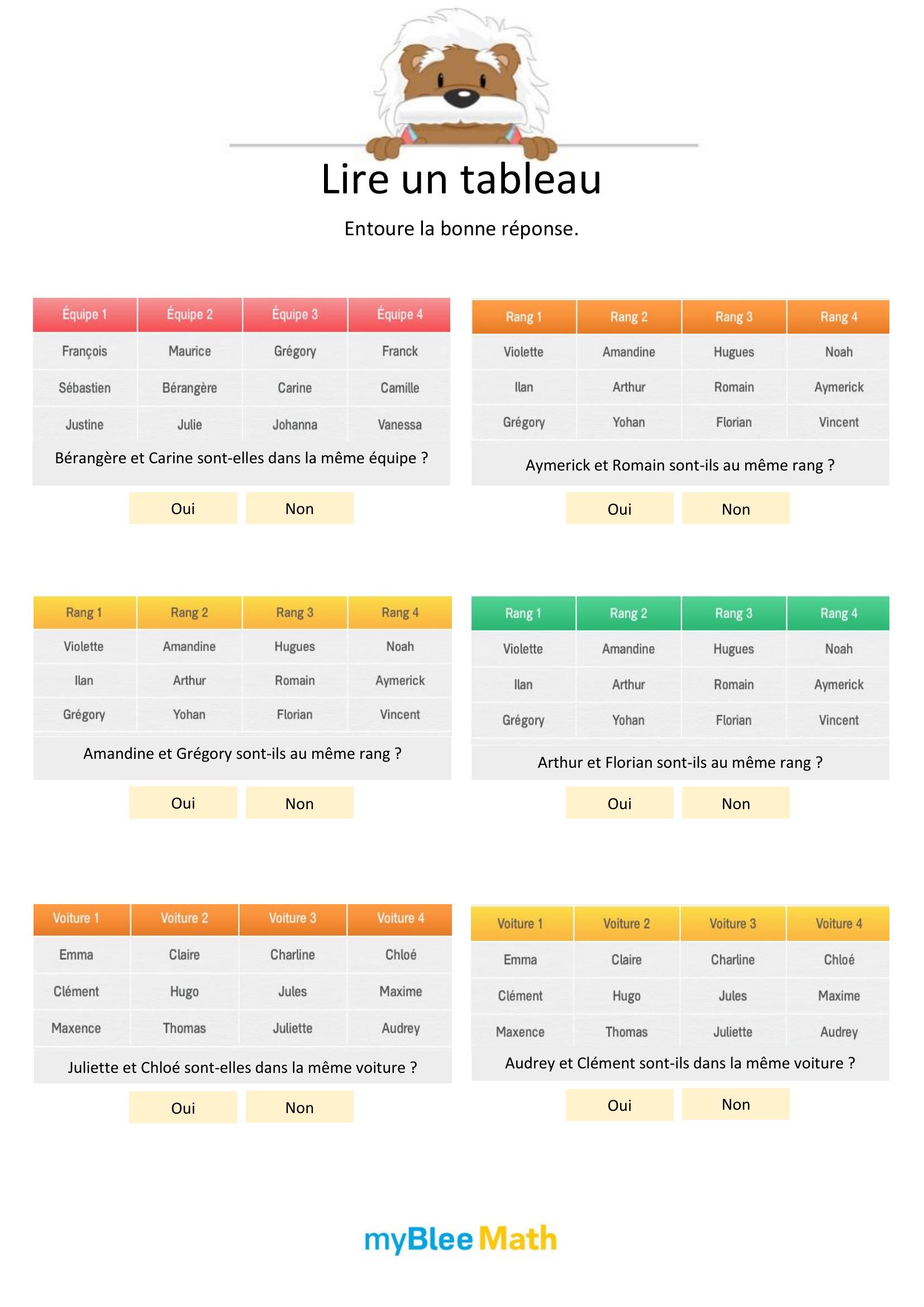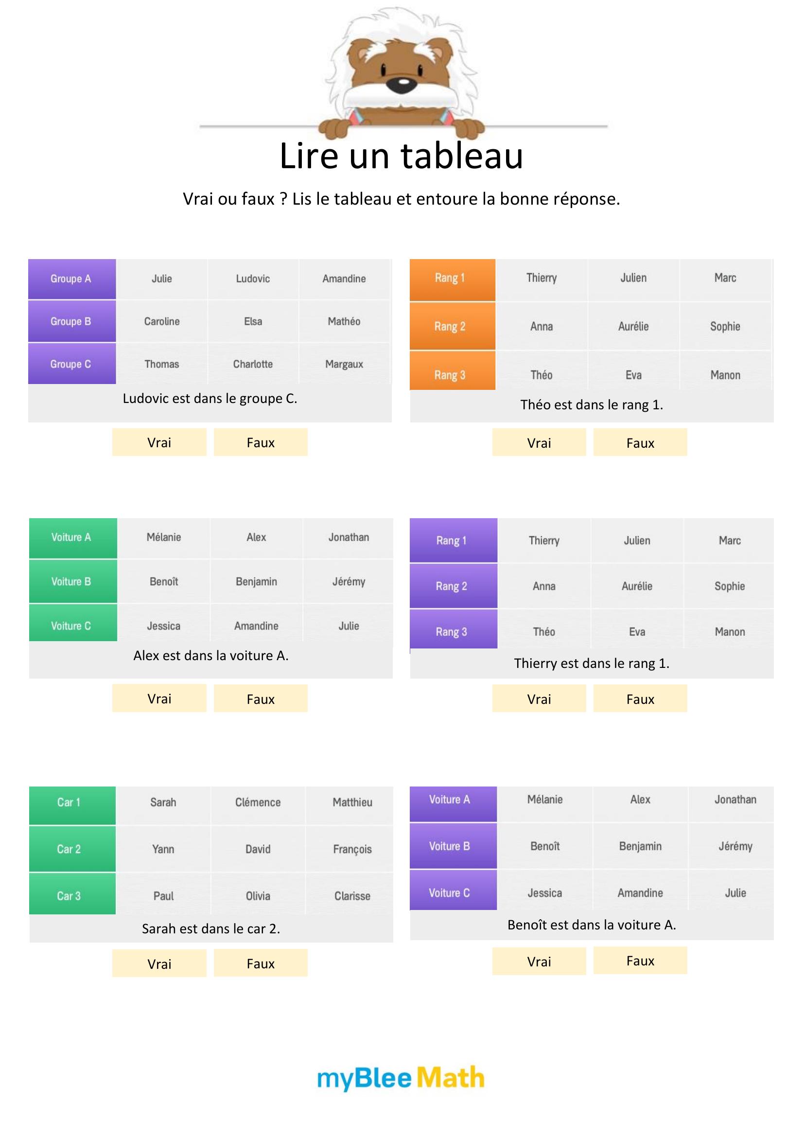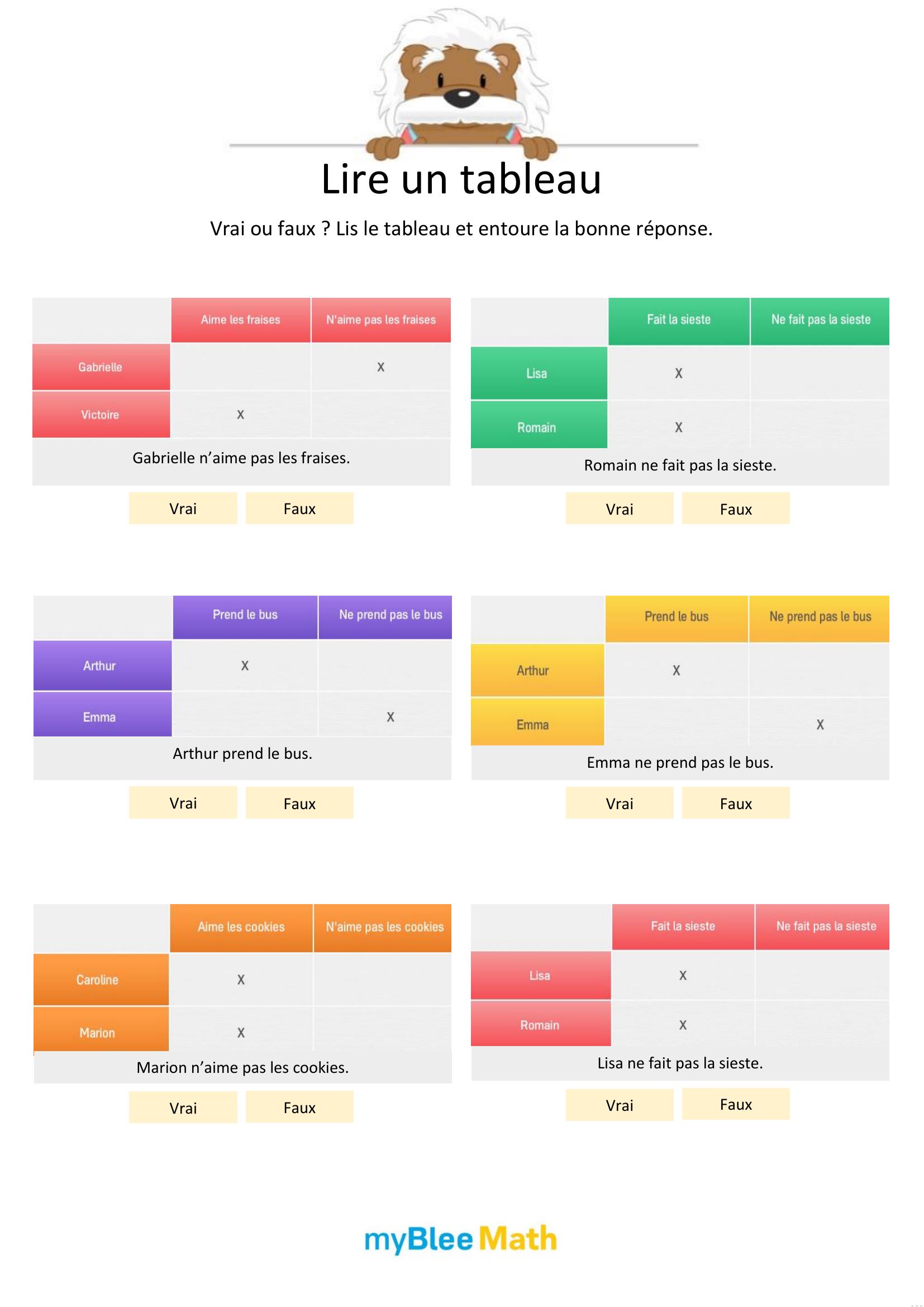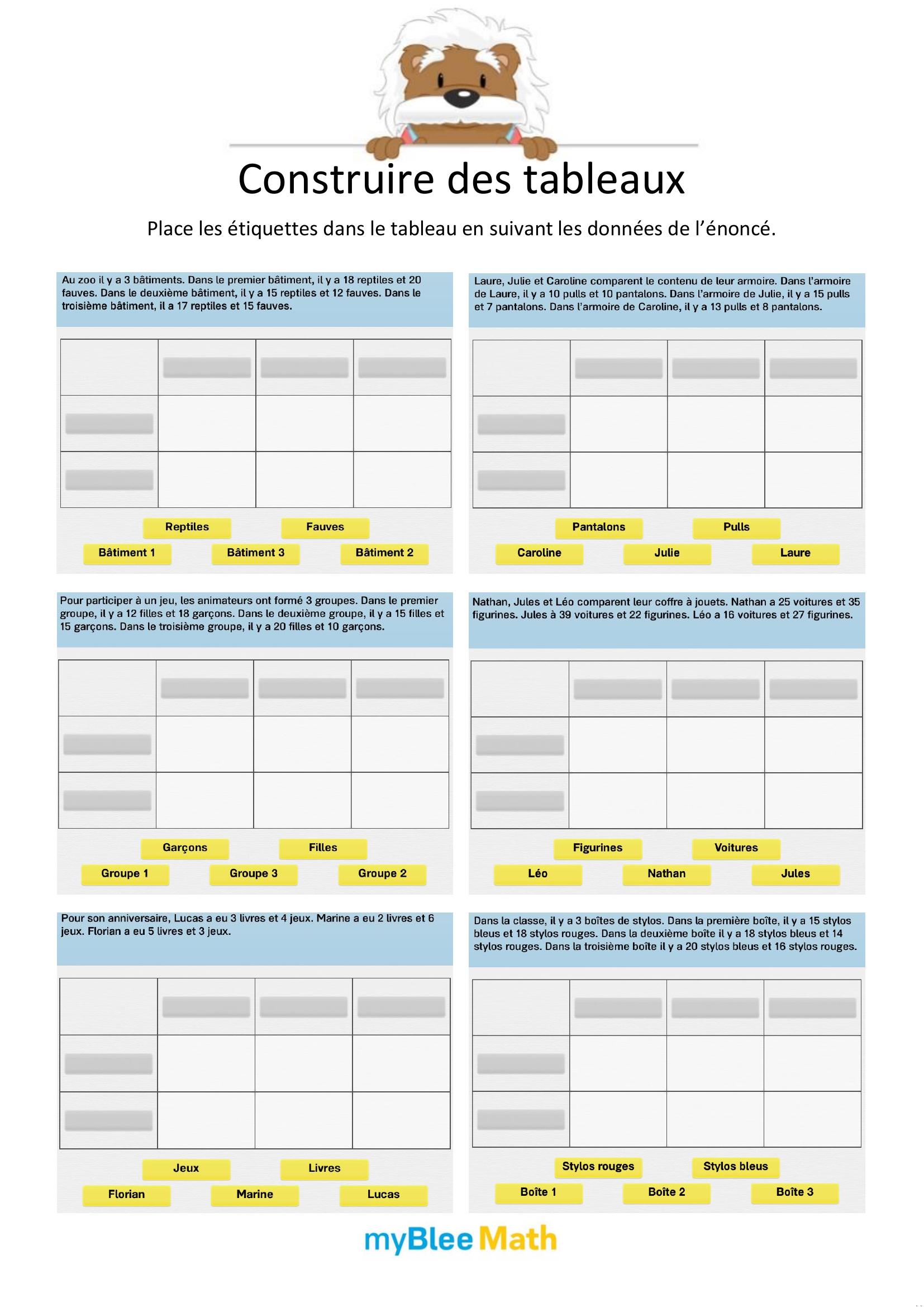Apprenez à lire et interpréter des tableaux et graphiques avec nos exercices ludiques et progressifs. Des activités claires pour maîtriser ces outils dès le primaire avec myBlee Math.