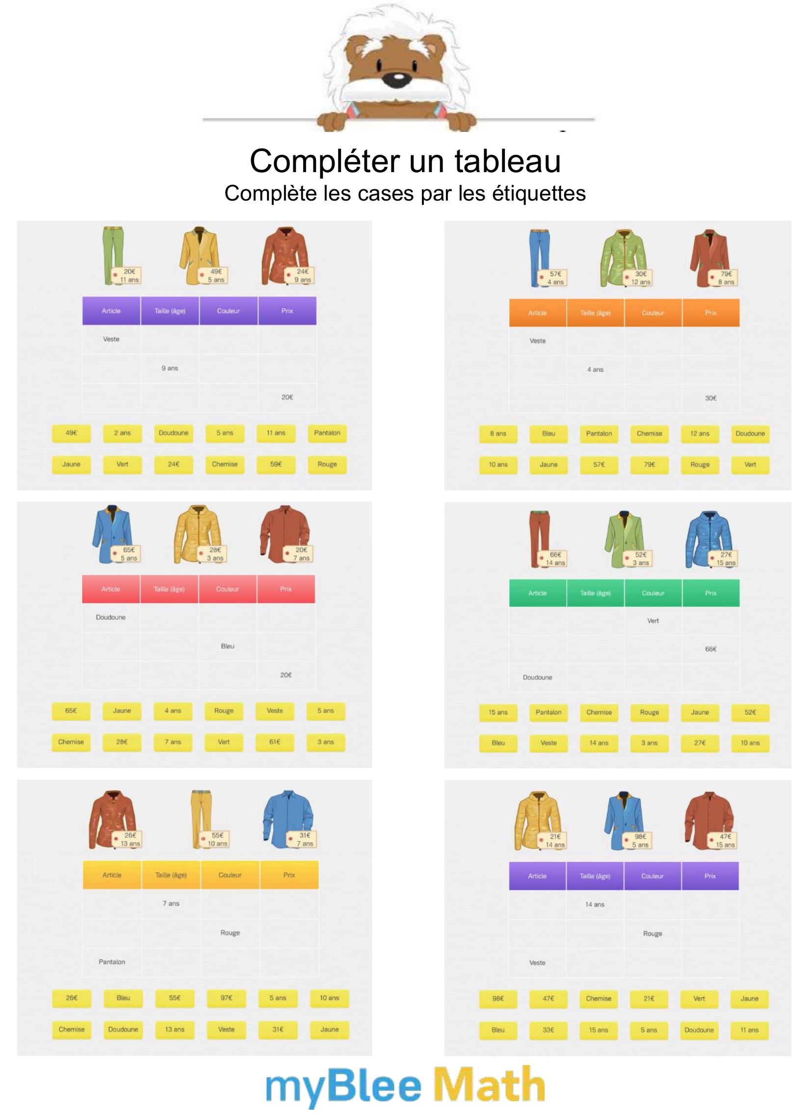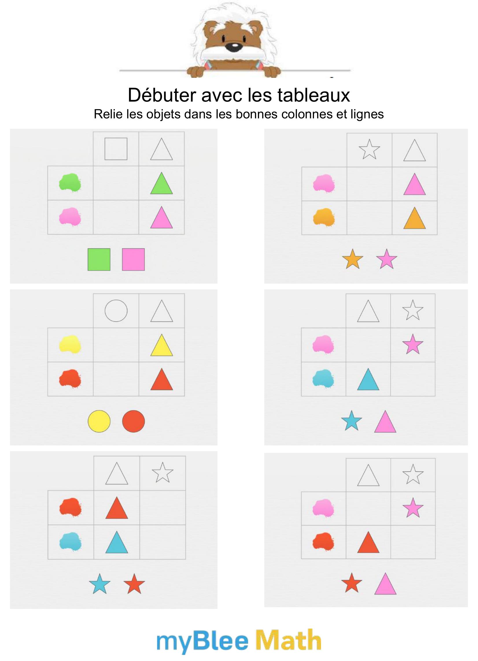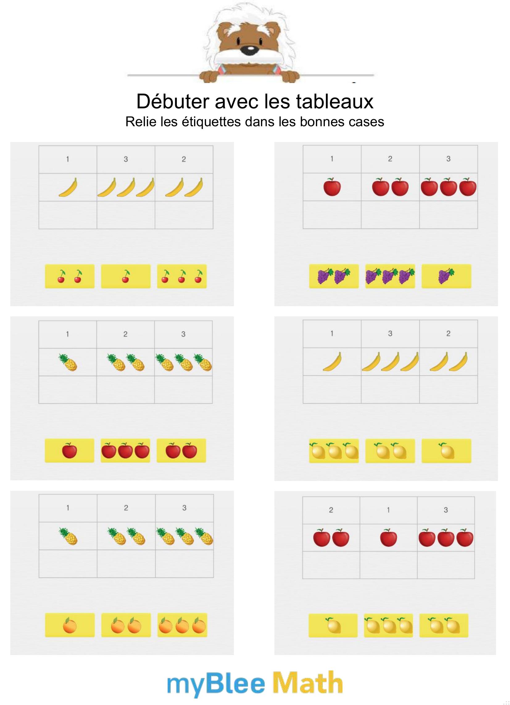 Pour accompagner l’apprentissage des tableaux et graphiques dès le primaire, l’application de maths myBlee Math constitue un excellent complément aux fiches papier. Conçue pour les enfants de l’école élémentaire jusqu’à la 6e, elle propose des activités interactives qui permettent de manipuler des données, lire des graphiques simples ou compléter des tableaux, de façon ludique et progressive.