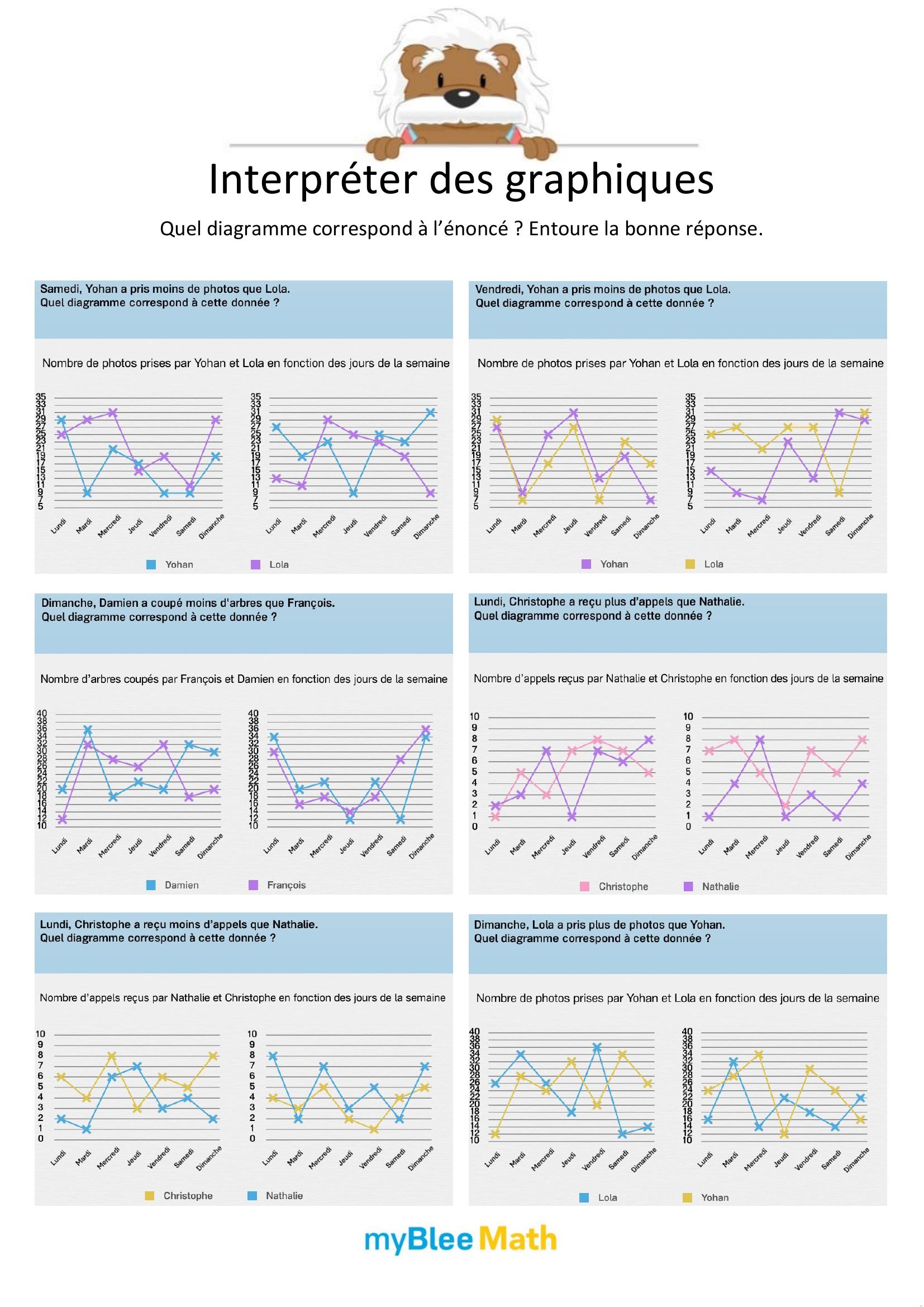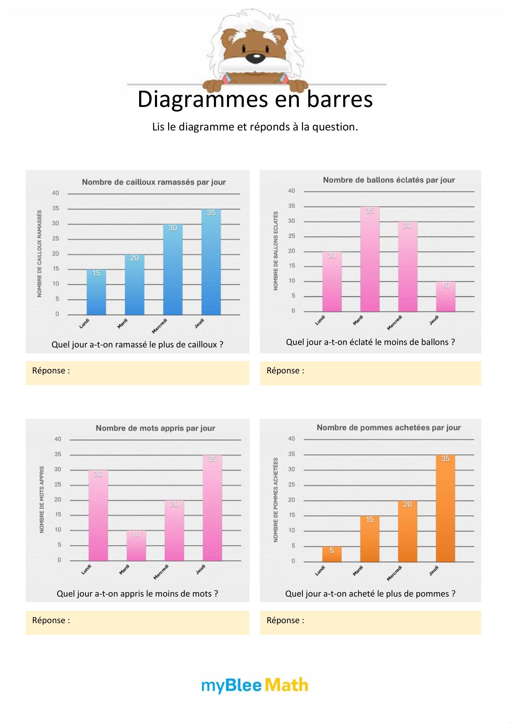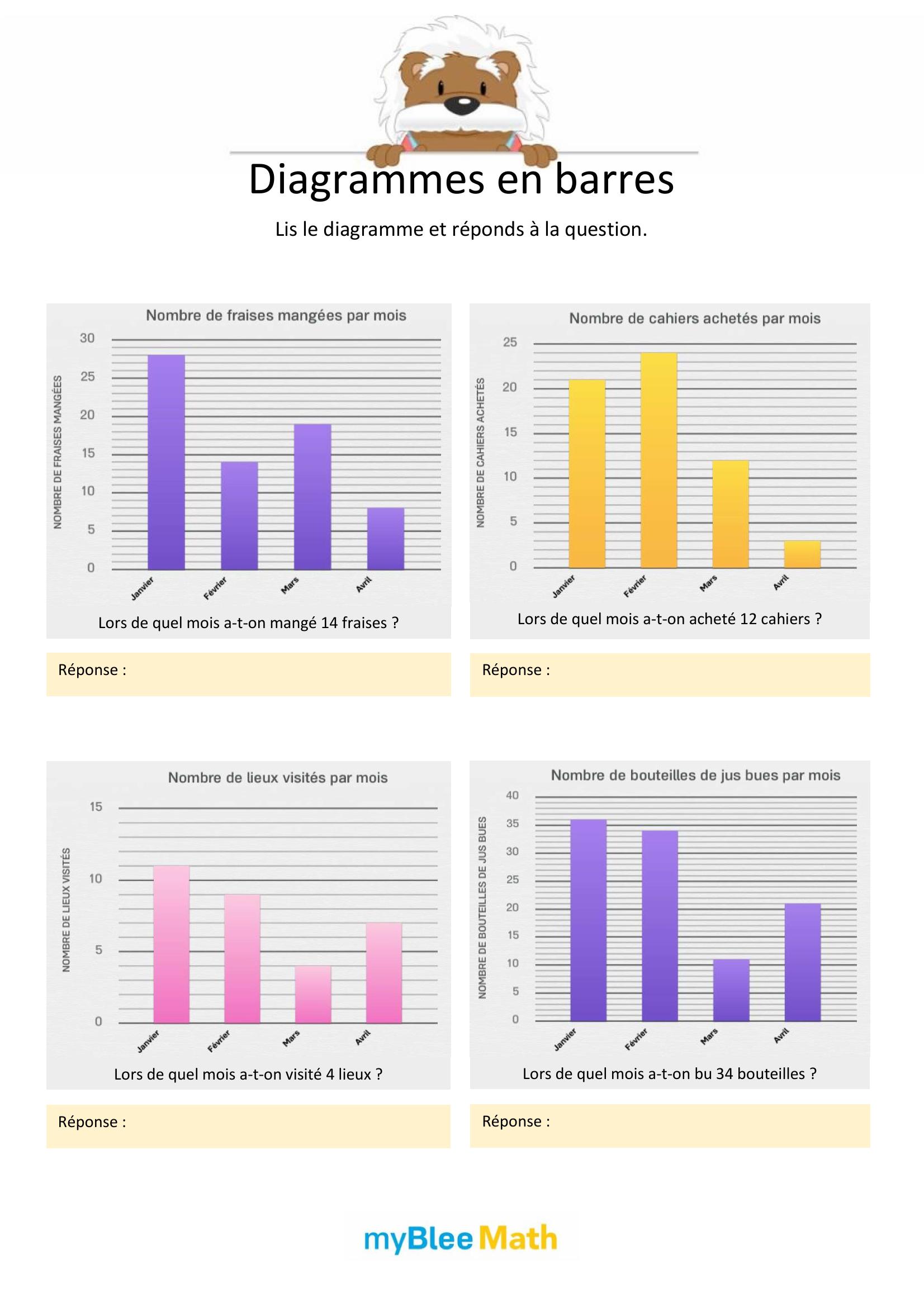 À travers des exercices variés, les enfants apprennent progressivement à repérer les éléments importants, à lire les axes d’un graphique ou à compléter un tableau. Qu’ils utilisent des fiches à imprimer, des supports PDF ou des activités interactives, l’objectif reste le même : les rendre plus autonomes face aux données chiffrées et visuelles.