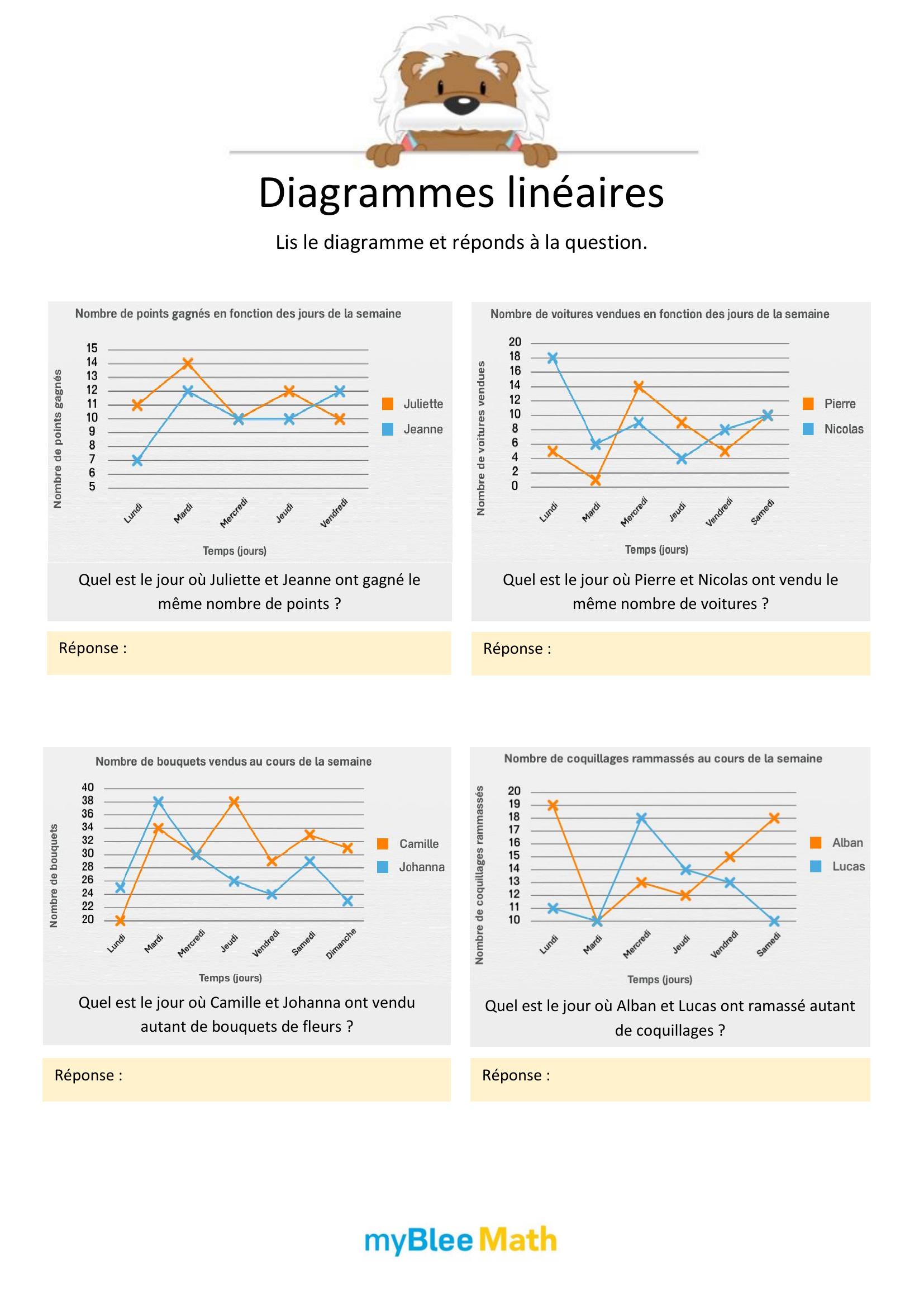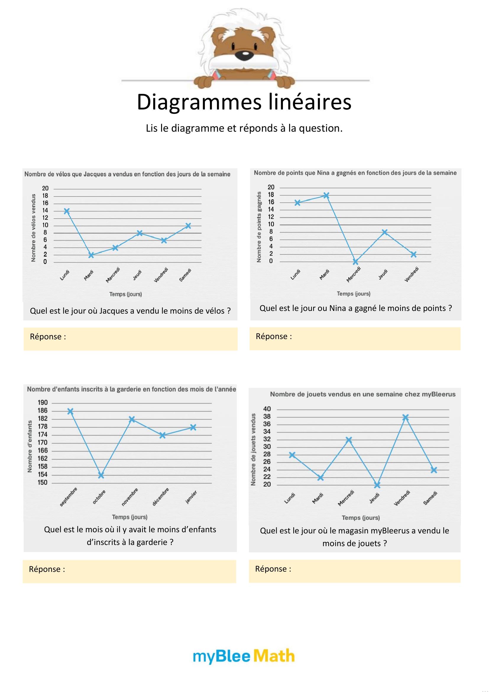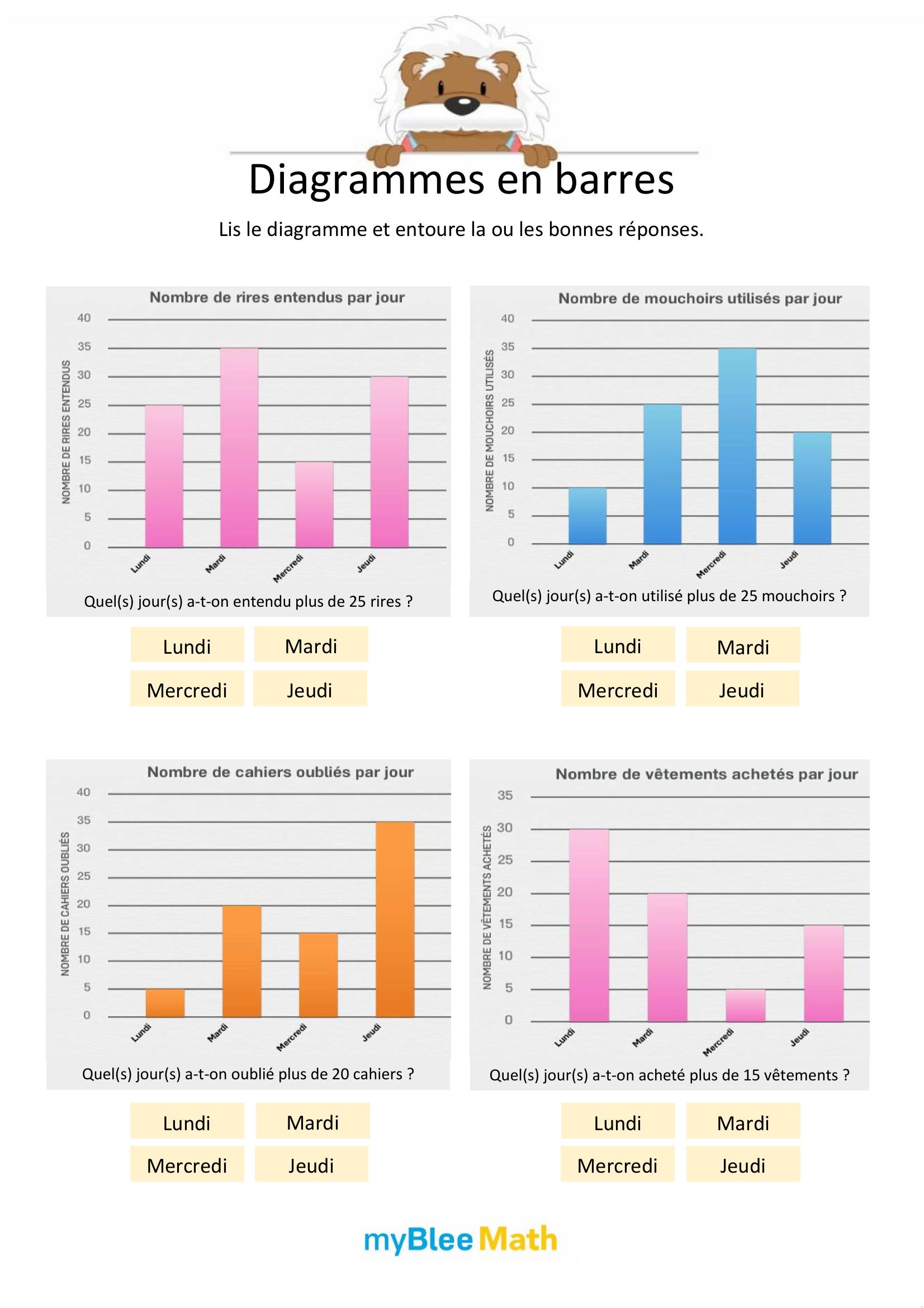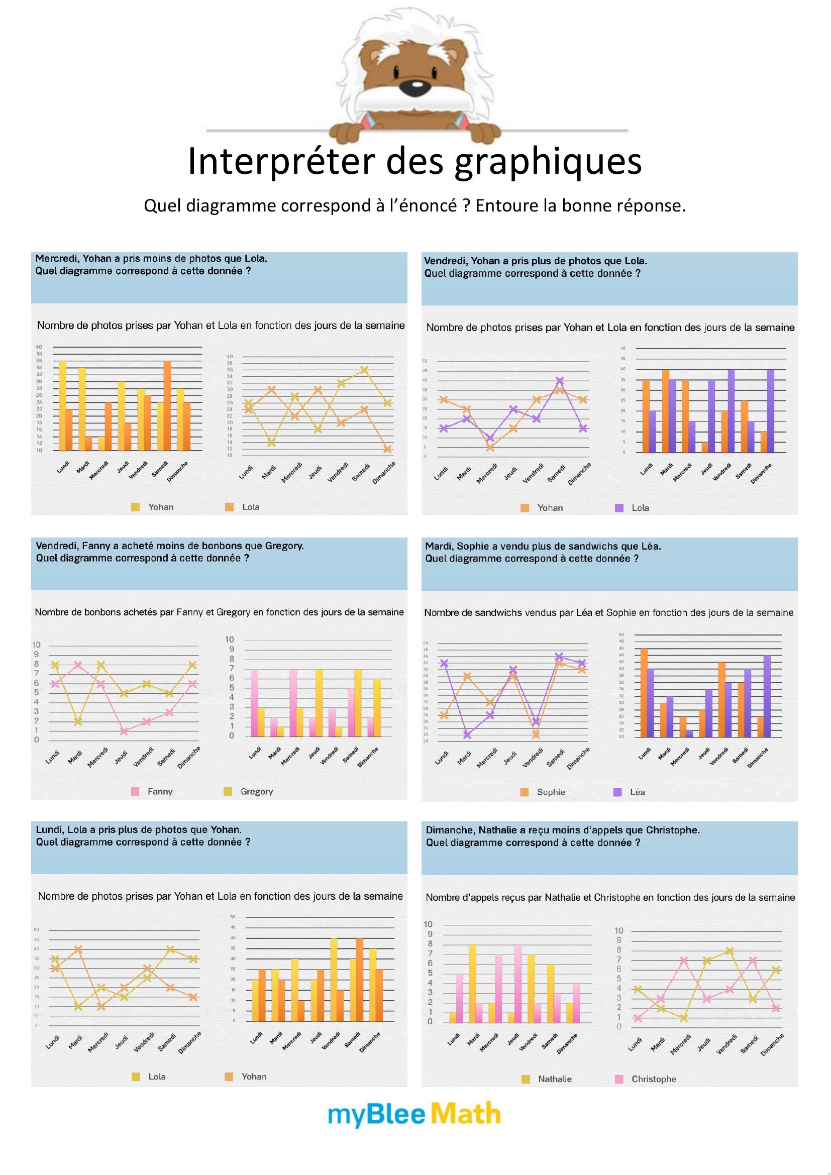 À travers des exercices variés, les enfants apprennent progressivement à repérer les éléments importants, à lire les axes d’un graphique ou à compléter un tableau. Qu’ils utilisent des fiches à imprimer, des supports PDF ou des activités interactives, l’objectif reste le même : les rendre plus autonomes face aux données chiffrées et visuelles.